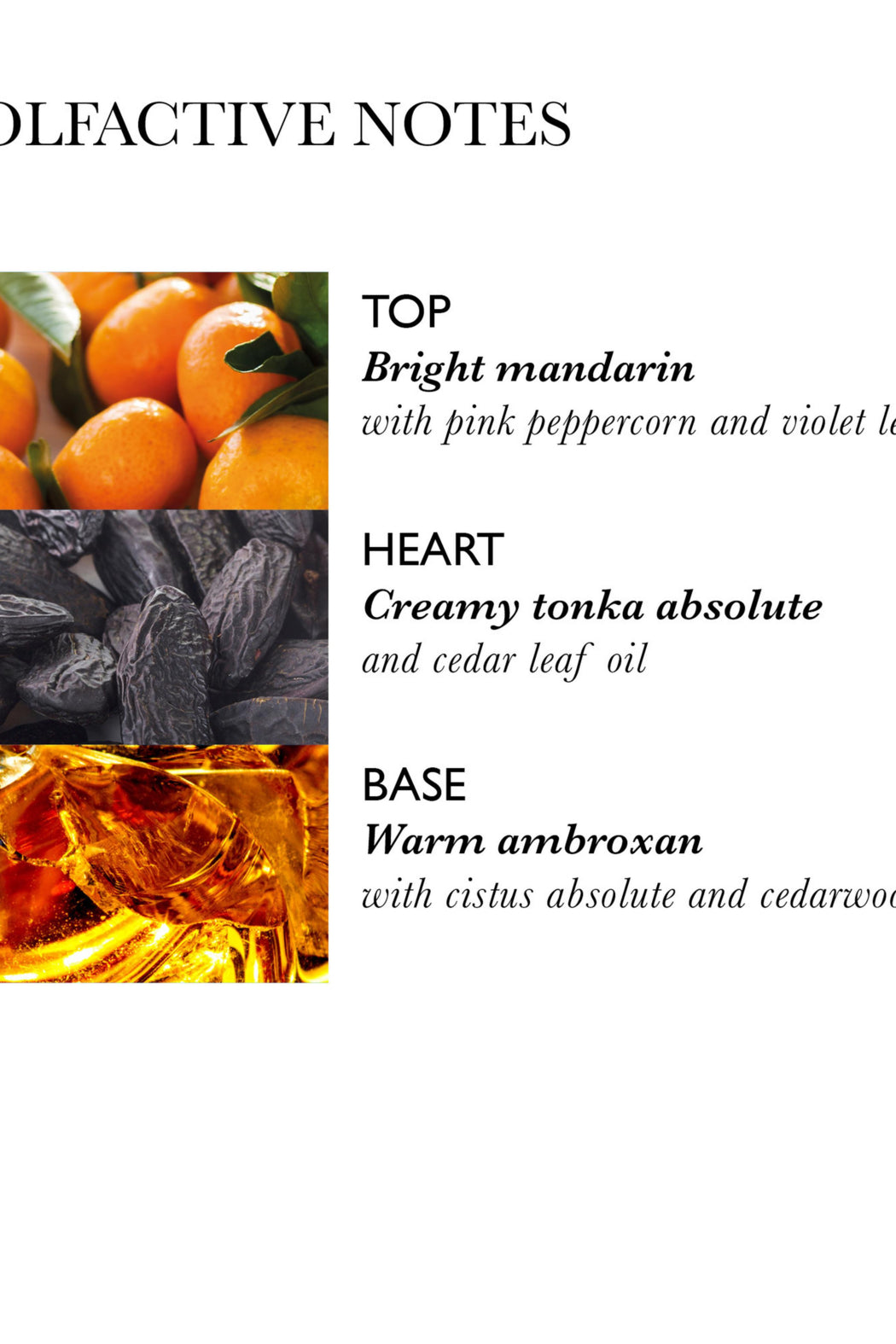 Top notes of mandarin oil, pink peppercorn and violet leaf.