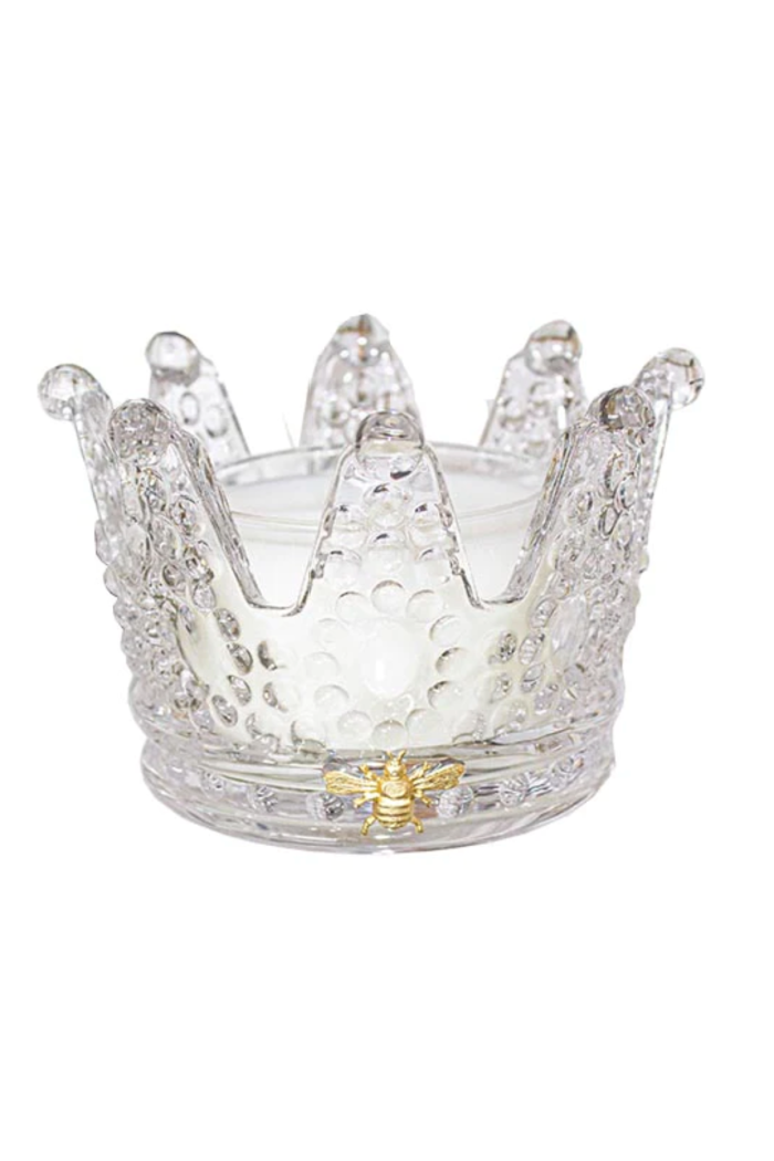 Our Royal Extract Queen Bee Crown Candle pays tribute to the honey that is the crown of the Royal Extract fragrance. Featuring our signature Royal Extract bees, votive candle sits nicely within this glistening glass crown giving a regal and royal touch to any home!