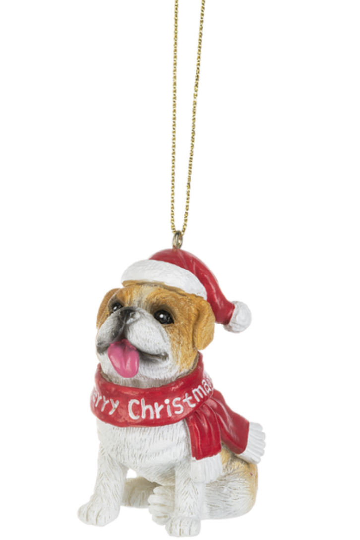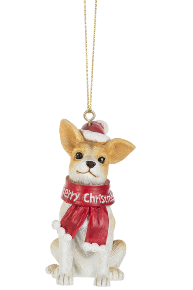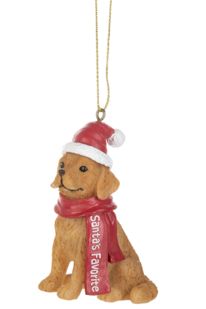 Santa Dog is Coming to Town Ornaments Polyresin 21/4" W. x 13/8" D. x 23/4" H. avg.