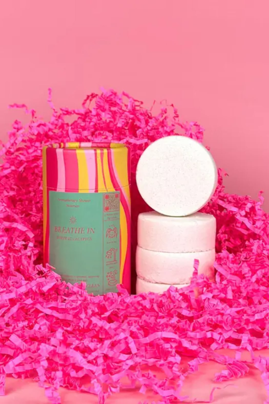 White Eucalyptus shower steamer — refreshing aromatherapy shower melt for clarity and stress relief. Cool, spa-like steam that resets your head and mood. ☀️ Breathe In opens with a cool marine breeze and spearmint lift before fresh eucalyptus takes center stage; sea salt and juniper finish clean and tranquil. Clear the fog and breathe deeper. ️ BREATHE IN — White Eucalyptus shower steamers • Scent & Mood: Crisp • Cooling • Fresh • What you get: luxury paper tube with 4 XL shower steamers · Net wt 4x2 oz (226 g). • How to use: Unwrap, place in tray/floor – drizzle water – breathe in the aromatherapy. • Gifting: Perfect stocking stuffer, spa party favor, self-care gift. • Clean & small-batch: Made in USA • small-batch • playful, giftable packaging. ✨ Fragrance Story: - Top: Marine, Spearmint & Lemon - Middle: Eucalyptus - Base: Sea Salt, Powder, Juniper Infused with essential oils: eucalyptus, spearmint leaf, juniper, nutmeg, lemon, clove leaf. ☀️️ From sunrise to post-workout, reach for crisp clarity: eucalyptus essential oil, brightened with spearmint, juniper, and lemon, turns your shower into a mini spa. A fizzy, fragrant set designed for relaxing baths, presented as a four-pack of round bath bombs. The SloGlo 4 Pack Bath Bombs by SloGlo delivers effervescent, skin-softening fizz with a subtle scent and pastel white finish. Nicely packaged for gifting or self-care, each tablet dissolves to tint and scent the water while releasing moisturizing ingredients. Perfect for unwinding after a long day or for a special-occasion pampering ritual.