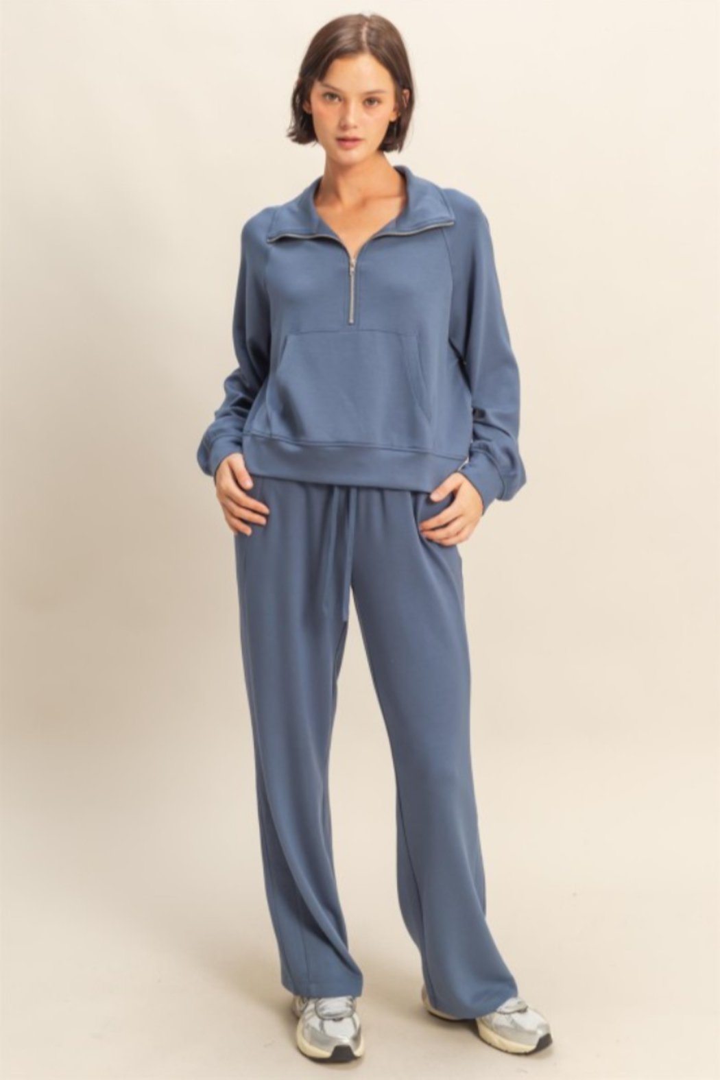 Double Knit Half Zip High Neck Collar Sweatshirt