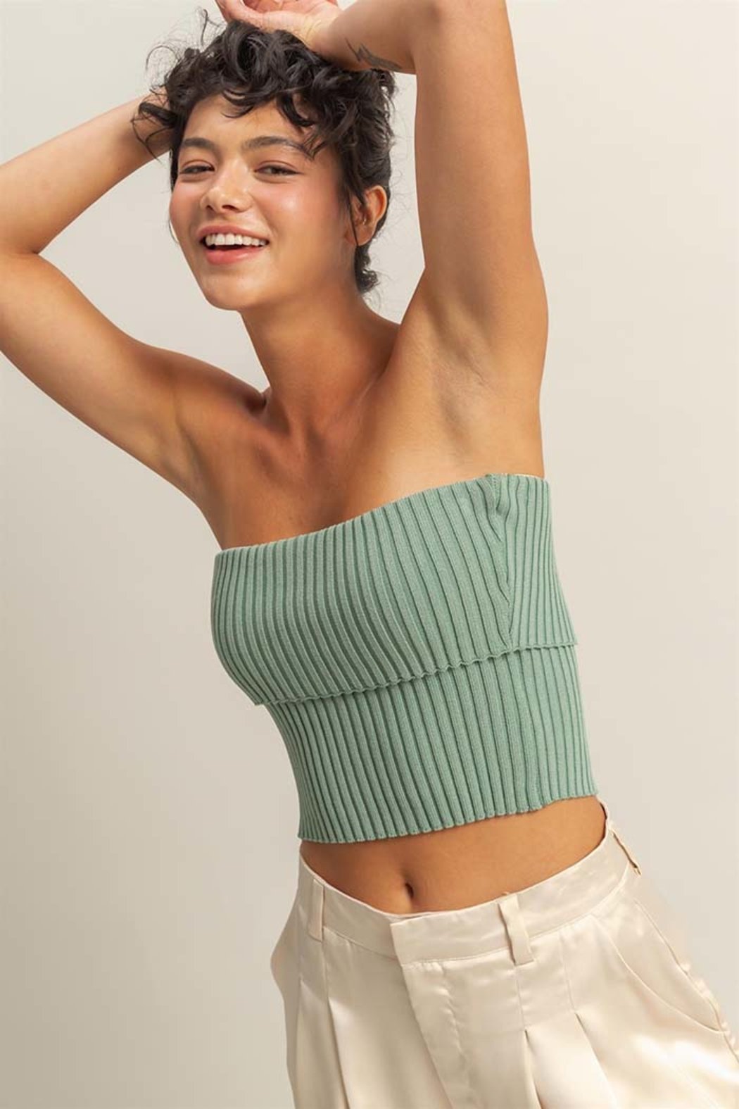 Your Outfit Will Look Extra Spicy With This Top. Featuring A Ribbed Knit Construction, The Top Shapes A Strapless Neckline With Foldover Detailing. Enjoy A Snug And Flattering Fit That Ends In A Cropped Hem.