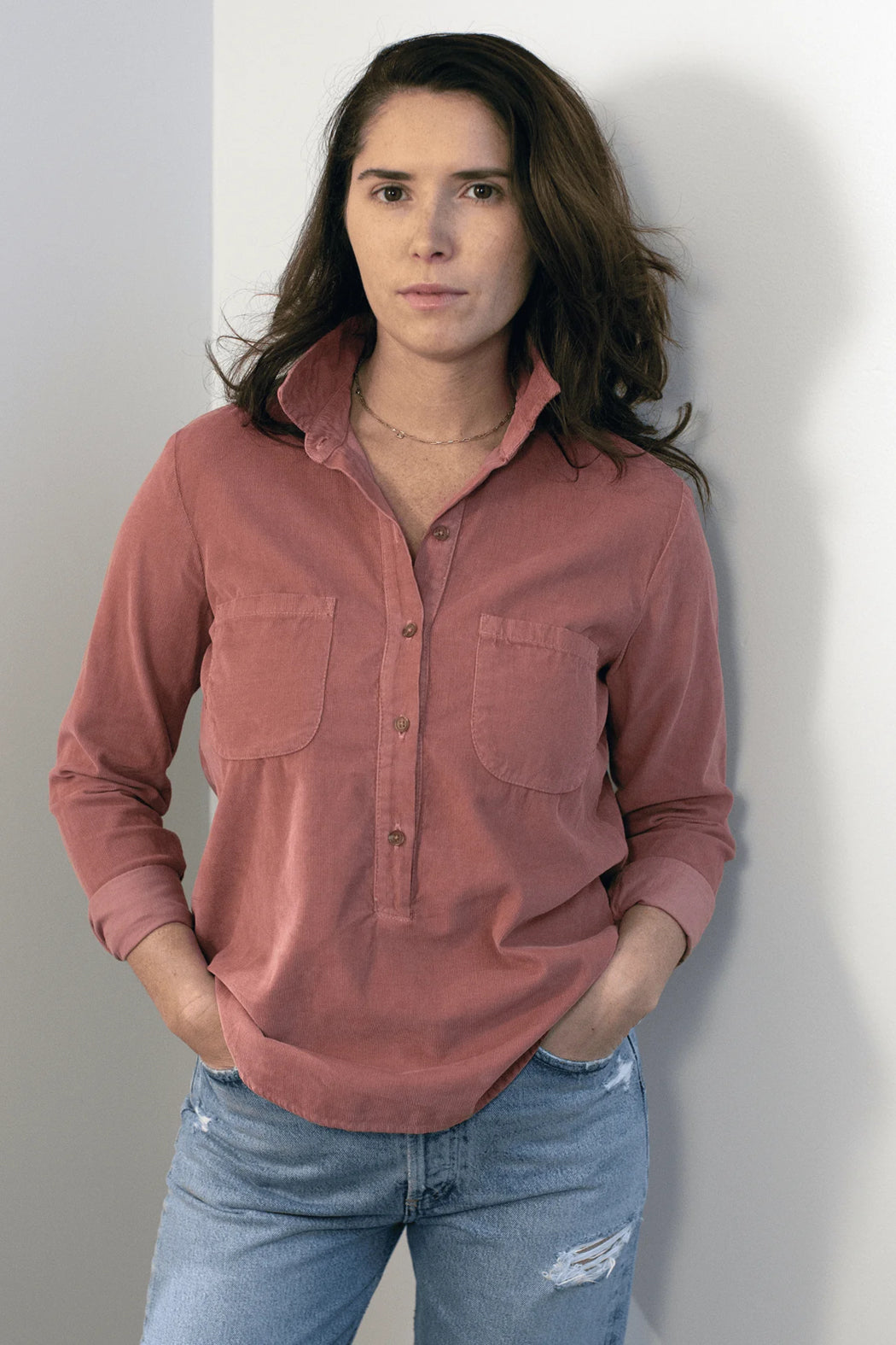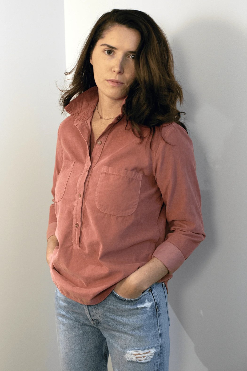 Velvet by Graham & Spencer Mini Cord Half Button Down Placket Shirt.