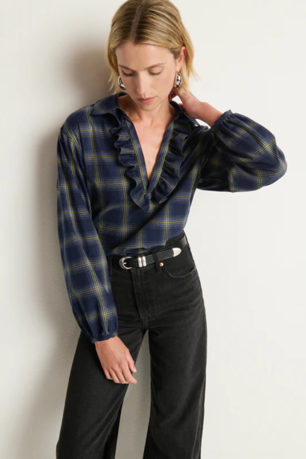 Flannel goes feminine—familiar and adored. The Beckett Blouse pairs casual comfort with subtle drama, crafted from 100% cotton sueded flannel in a relaxed fit, with a keyhole neckline and puff sleeves to bring softness.