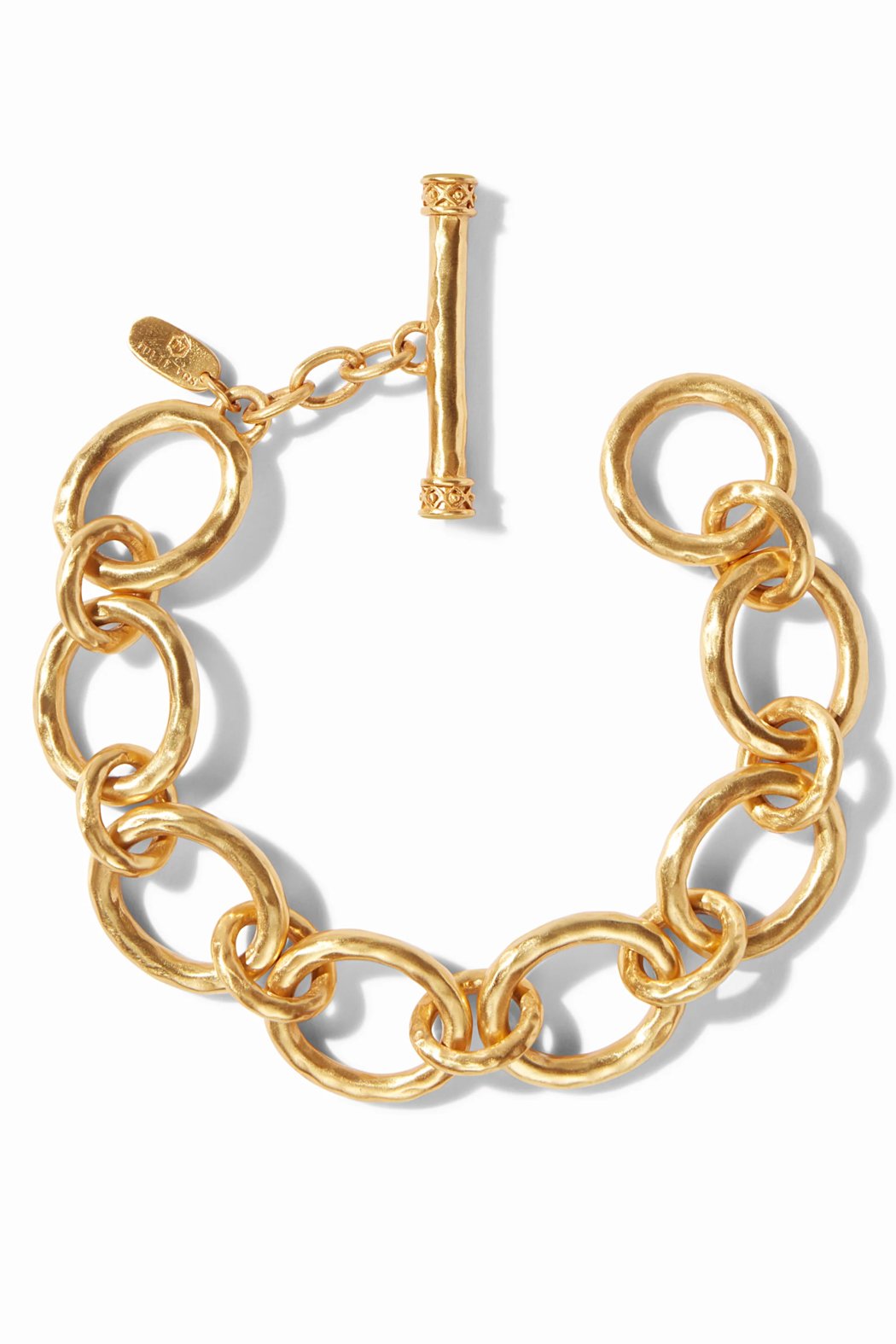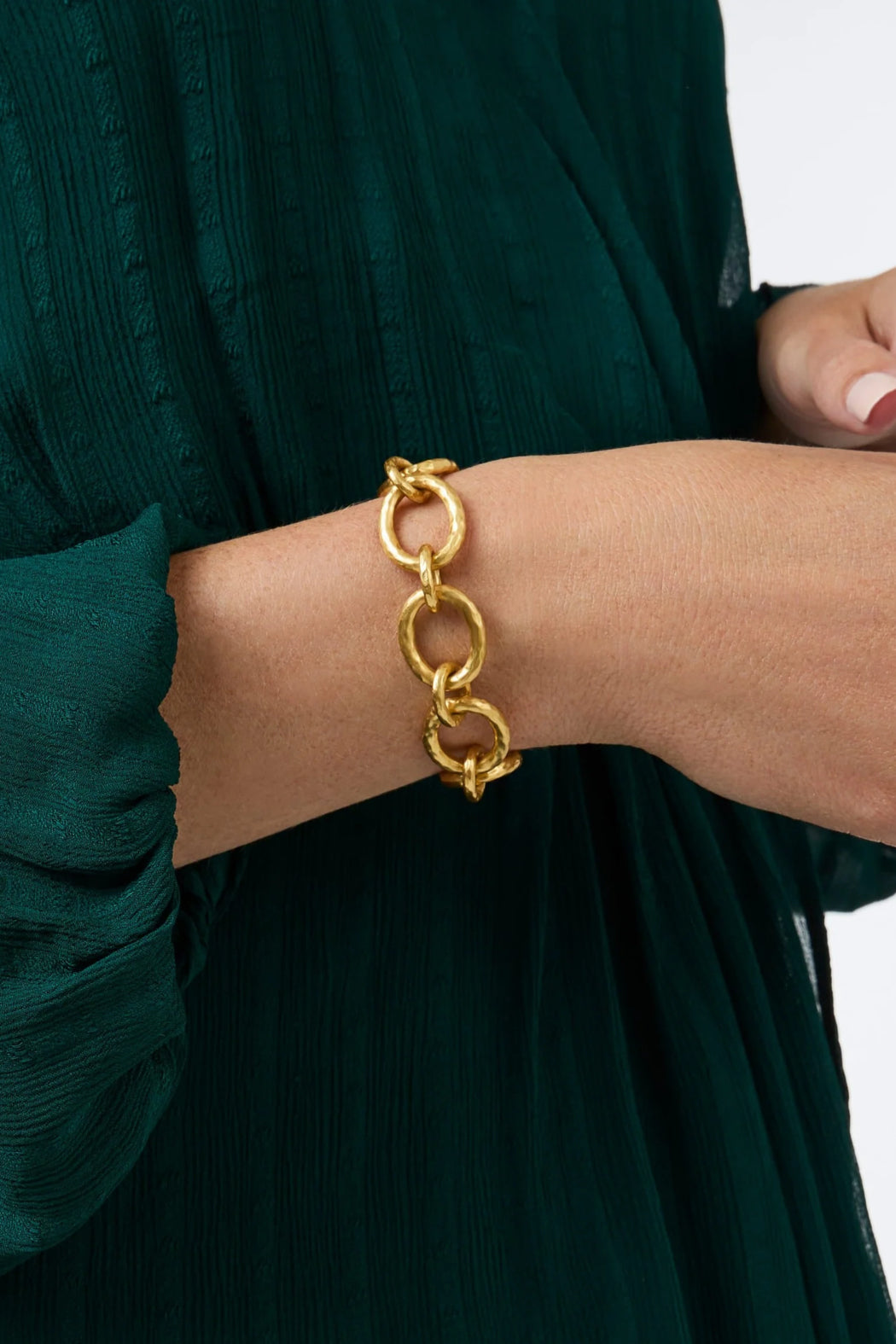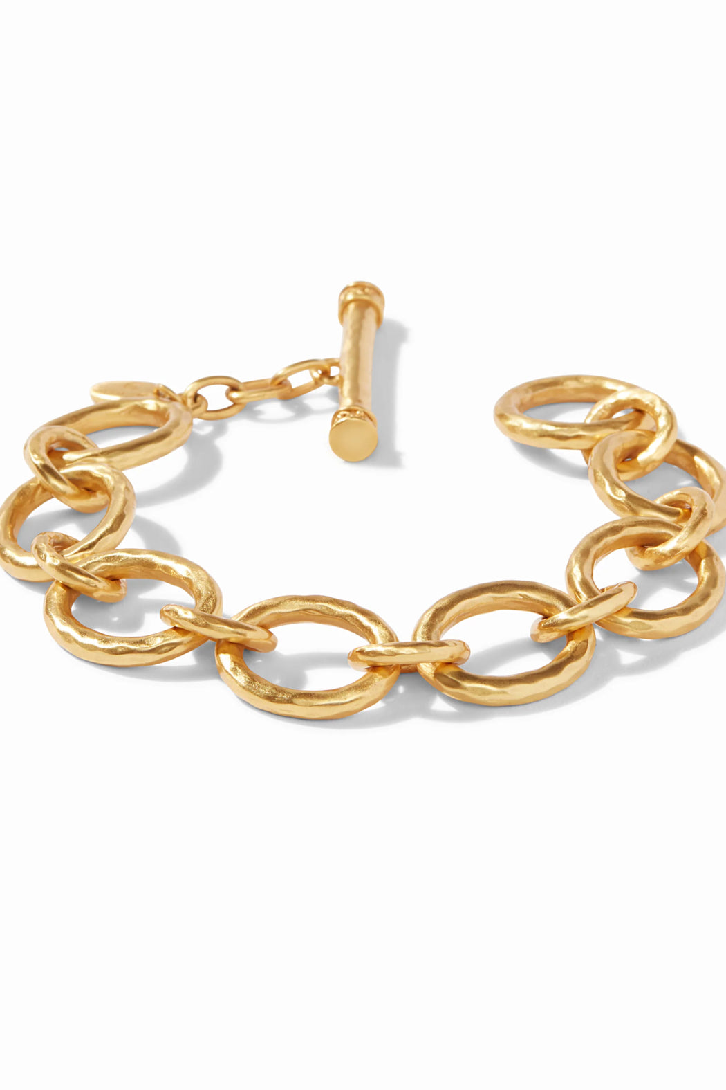 A luxurious bracelet of lightly hammered golden links, finished with a toggle closure by Julie Vos