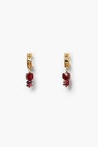 Elegant and composed, the Cressida Hoop Earrings feel like a timeless treasure. The minutely textured gold hoops feature petite braid detailing along the sides and trefoil motifs along the face of the metal. Twin hessonite and garnet pendants summon tactile warmth.