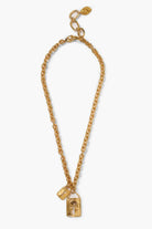 Bold and substantial, the Double Lock Charm Necklace features twin charms suspended from a sizable chain. Artfully crafted, they form an unforgettable statement piece. Gold plated brass, smoky quartz. 16" - 17 1/2" adjustable. Handmade in Vietnam.
