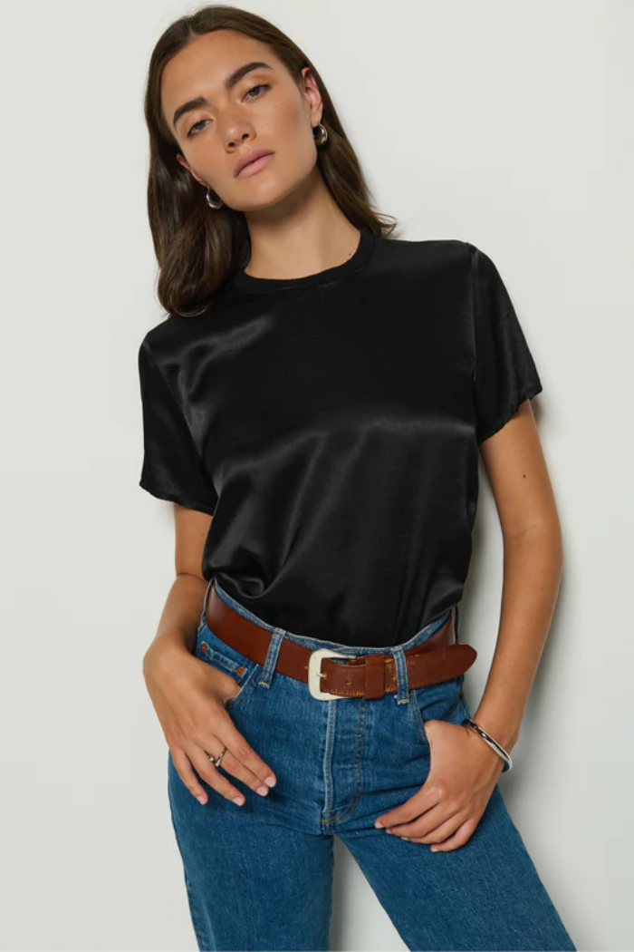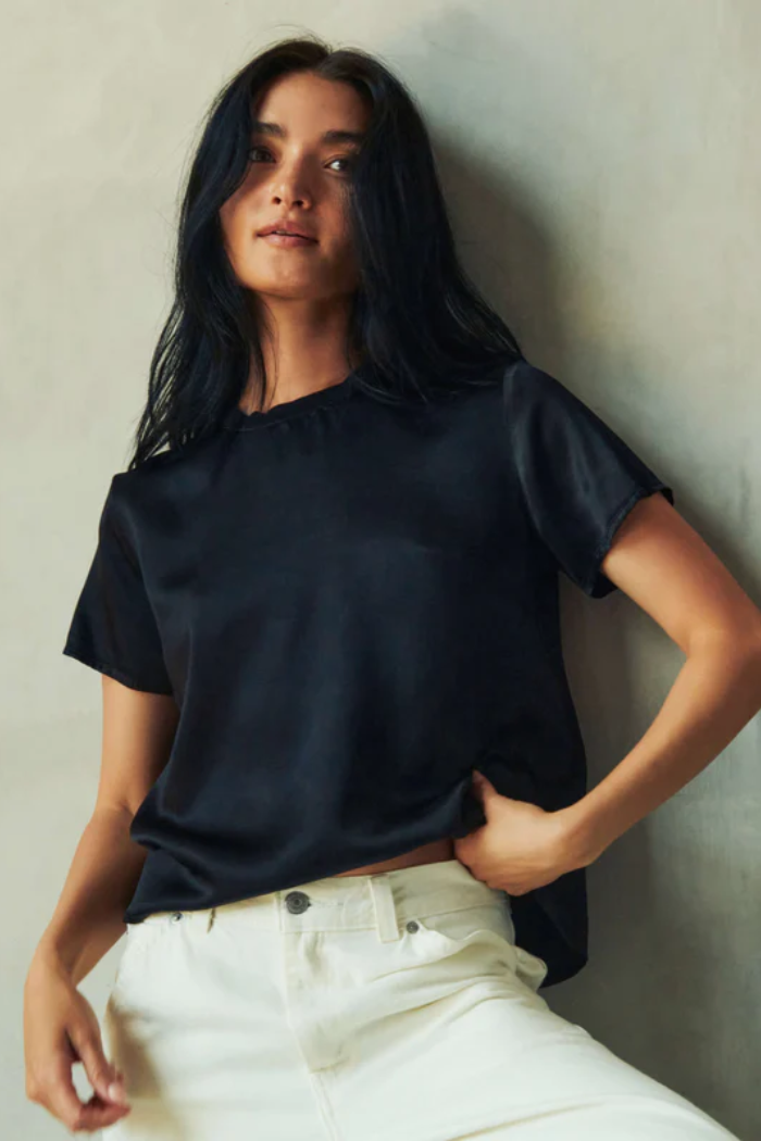 The dressed up version of your favorite laid-back, slightly cropped tee with a contrasting rib neckband.
