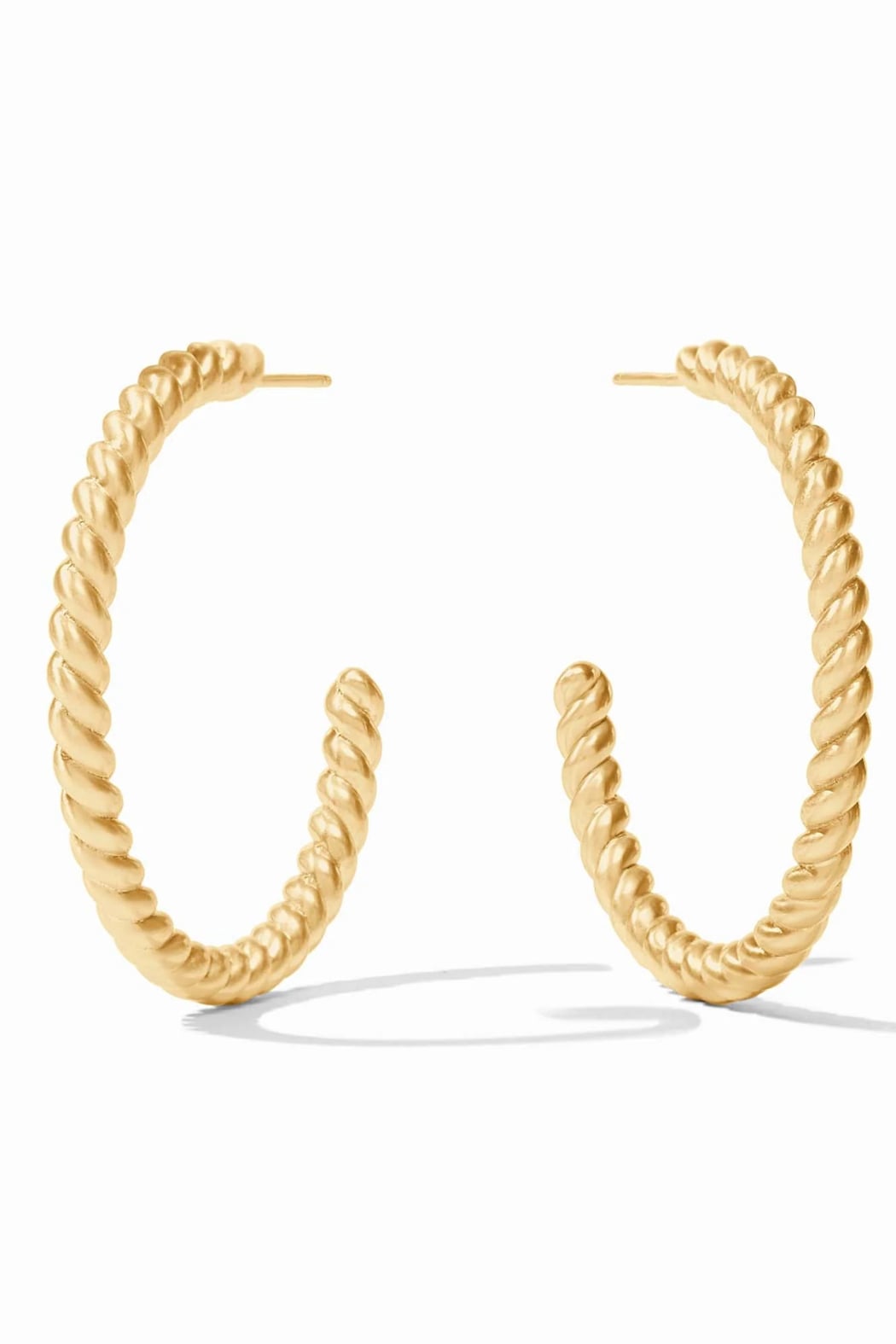 Simple yet elegant, this golden twisted rope hoop curves gracefully beneath your ear.