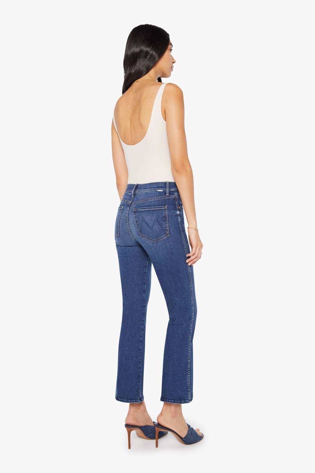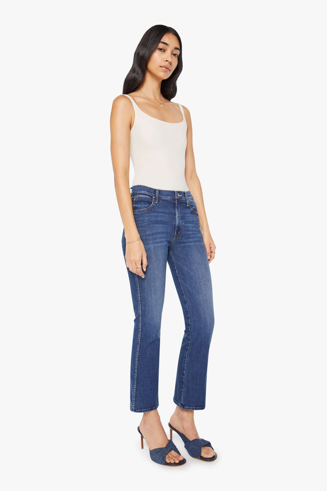 Ready, set, go. Mid-rise jeans with a flared leg, zip fly and a 29.75-inch inseam with a clean hem. Made from a blend of recycled stretch denim, Start Your Engines is a dark blue with whiskering and fading at the knees.