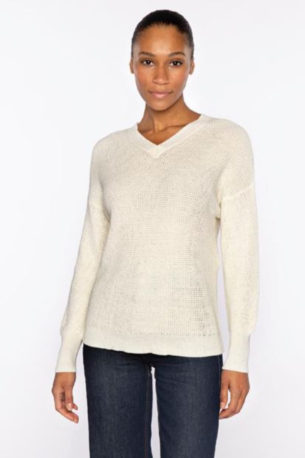 Indulge in the exquisite comfort and timeless elegance of our Thermal Sequin Vee, a masterpiece crafted from 100% premium cotton. This luxurious piece drapes beautifully, offering a relaxed fit that adapts gracefully to your form over time. Its inherent versatility allows for seamless transitions from day to evening wear; pair it with tailored trousers for a sophisticated office ensemble or with a flowing silk skirt for an elevated casual look. Experience unparalleled softness against your skin while exuding an understated beauty that captivates.