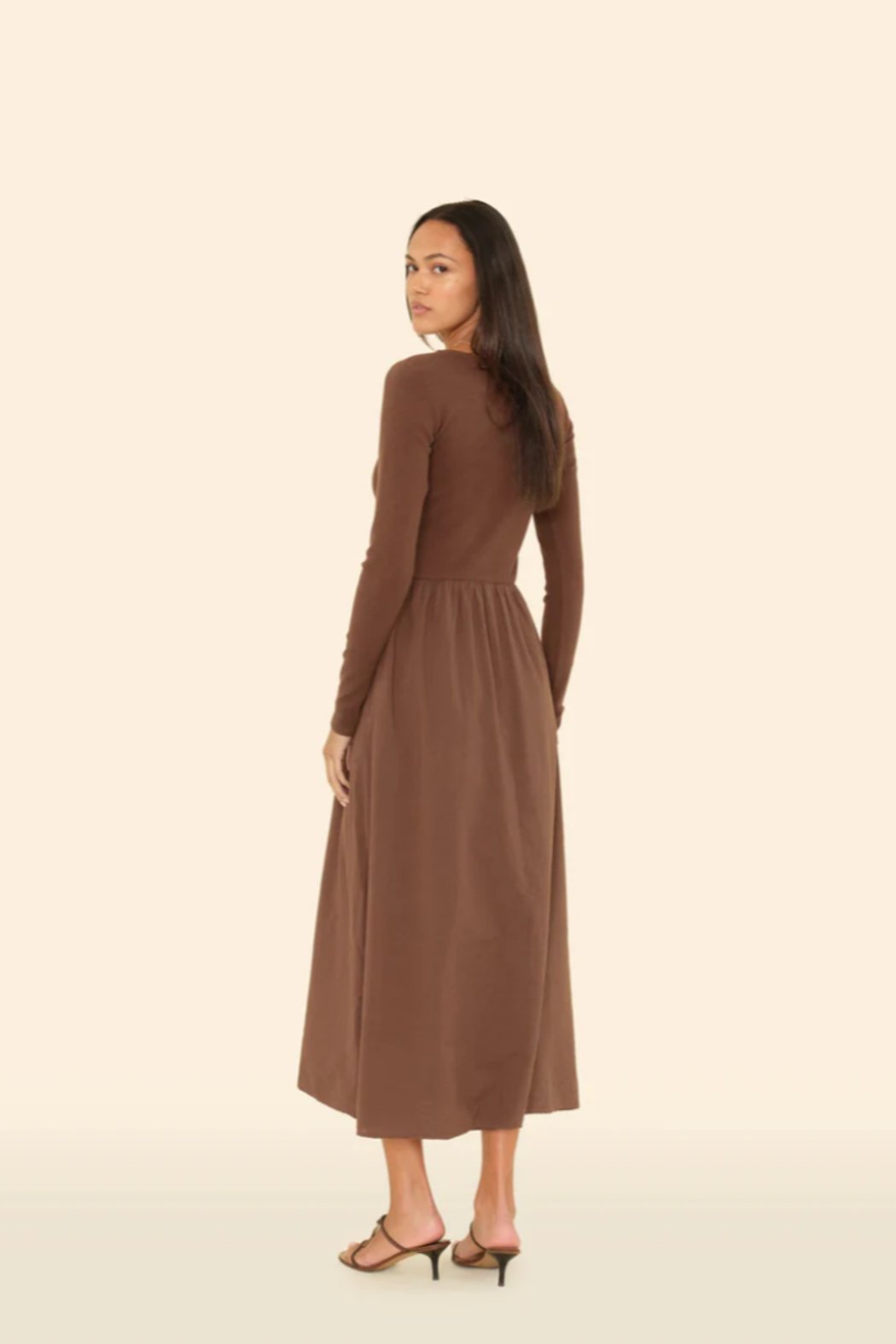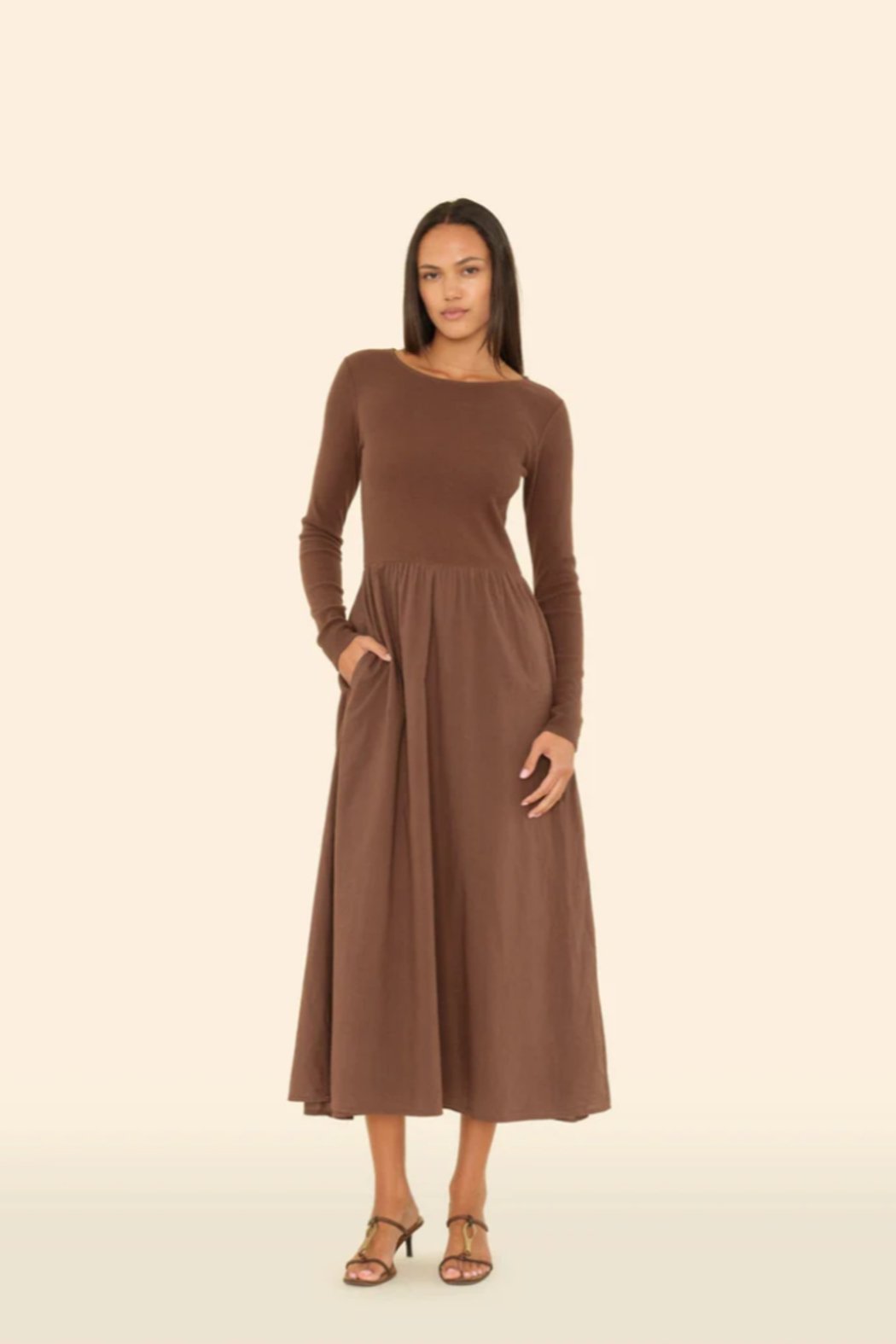 Best of Both Worlds. Zandra is new this season in our classic lightweight woven cotton poplin for a lived-in look and feel. This long sleeve maxi dress is lined and features a contrast cotton rib knit top, full skirt, and side seam pockets.