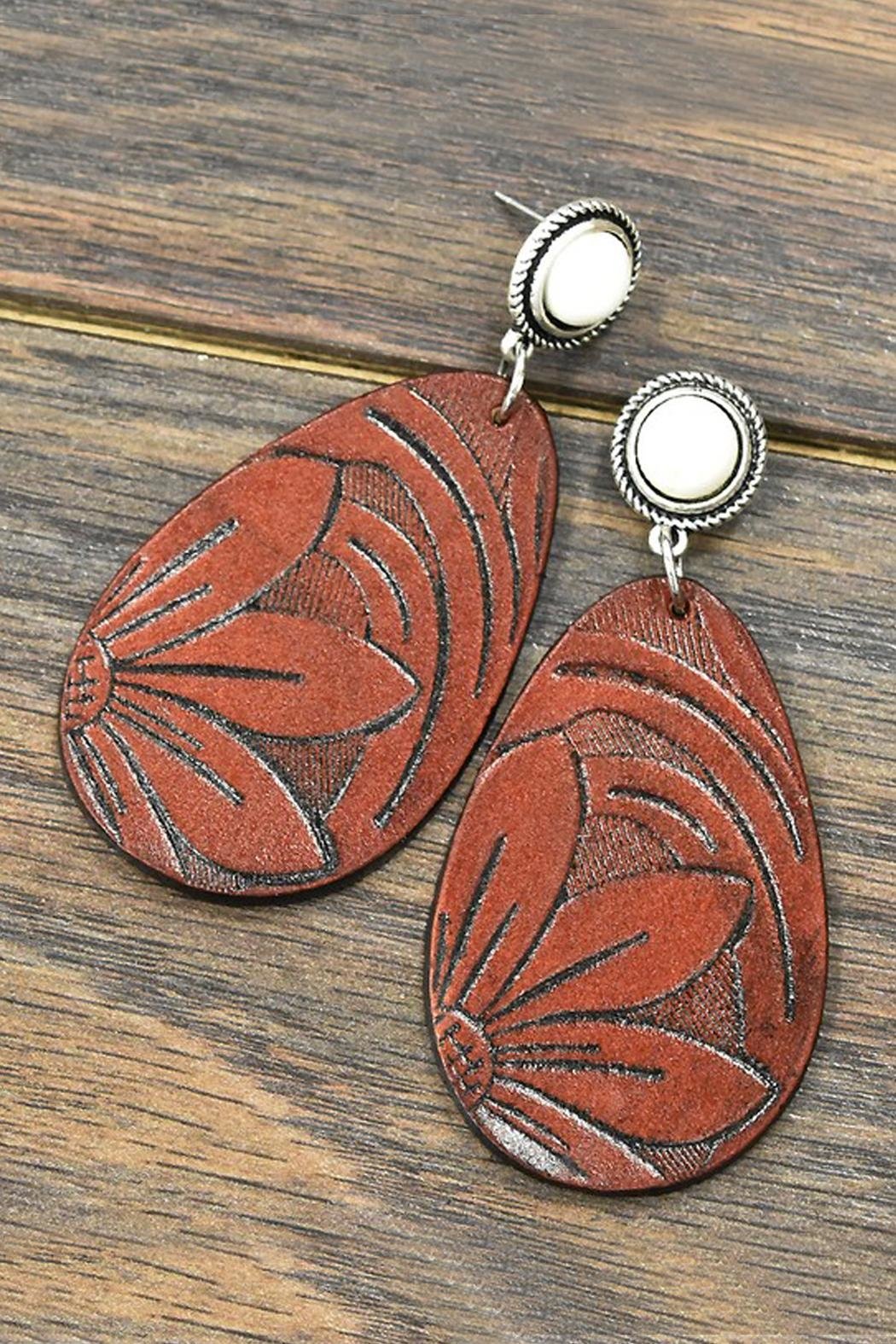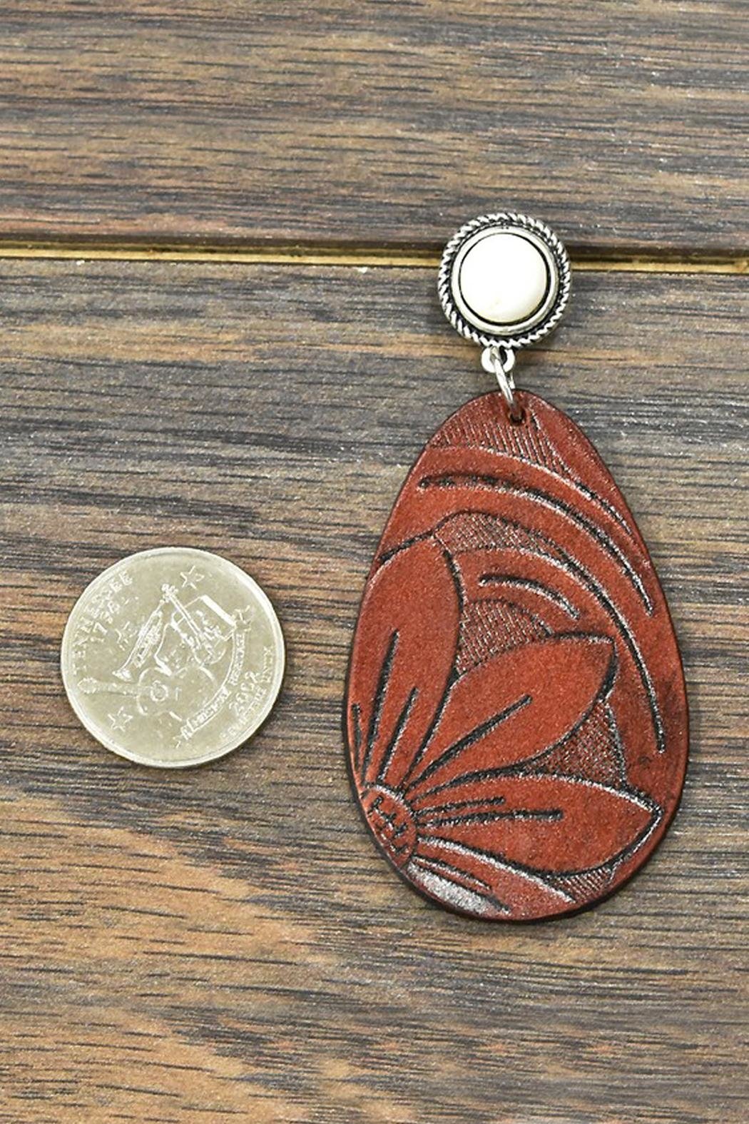 Tooling-Leather Natural-White-Turquoise Post-Earrings
