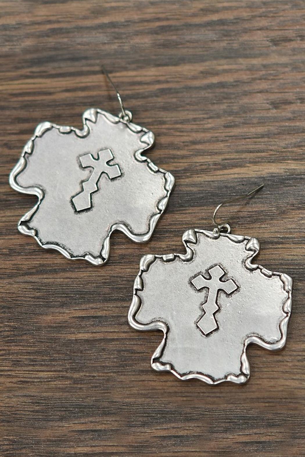 Western Antique Silver Cross Earrings * 1.8" long earring & fish hook * Heavy 31 grams weight * Antique silver plate * Nickel, Lead & Chrome free