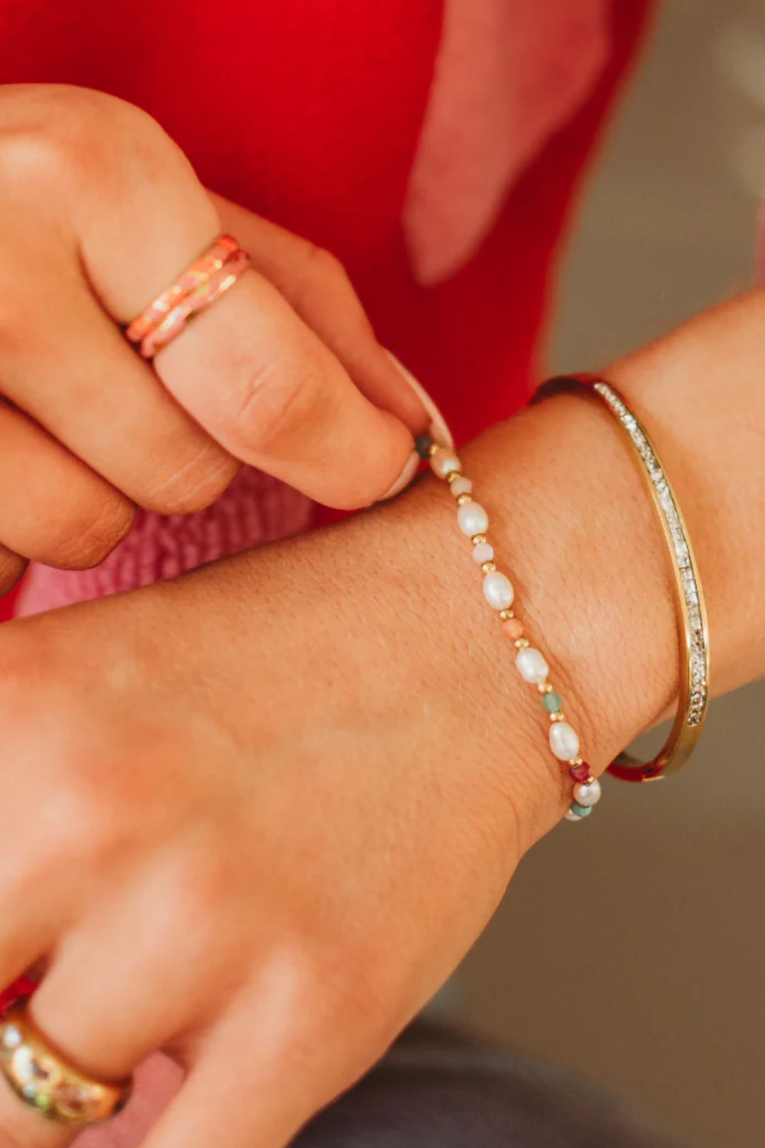 Start your day on a joyful note with this Colorful Pearl Bracelet. It's an elastic bracelet to fit most wrists with ease. Including this accessory in your outfit will give it a fun, new feel. Layer it with other bracelets for a more stylish look.