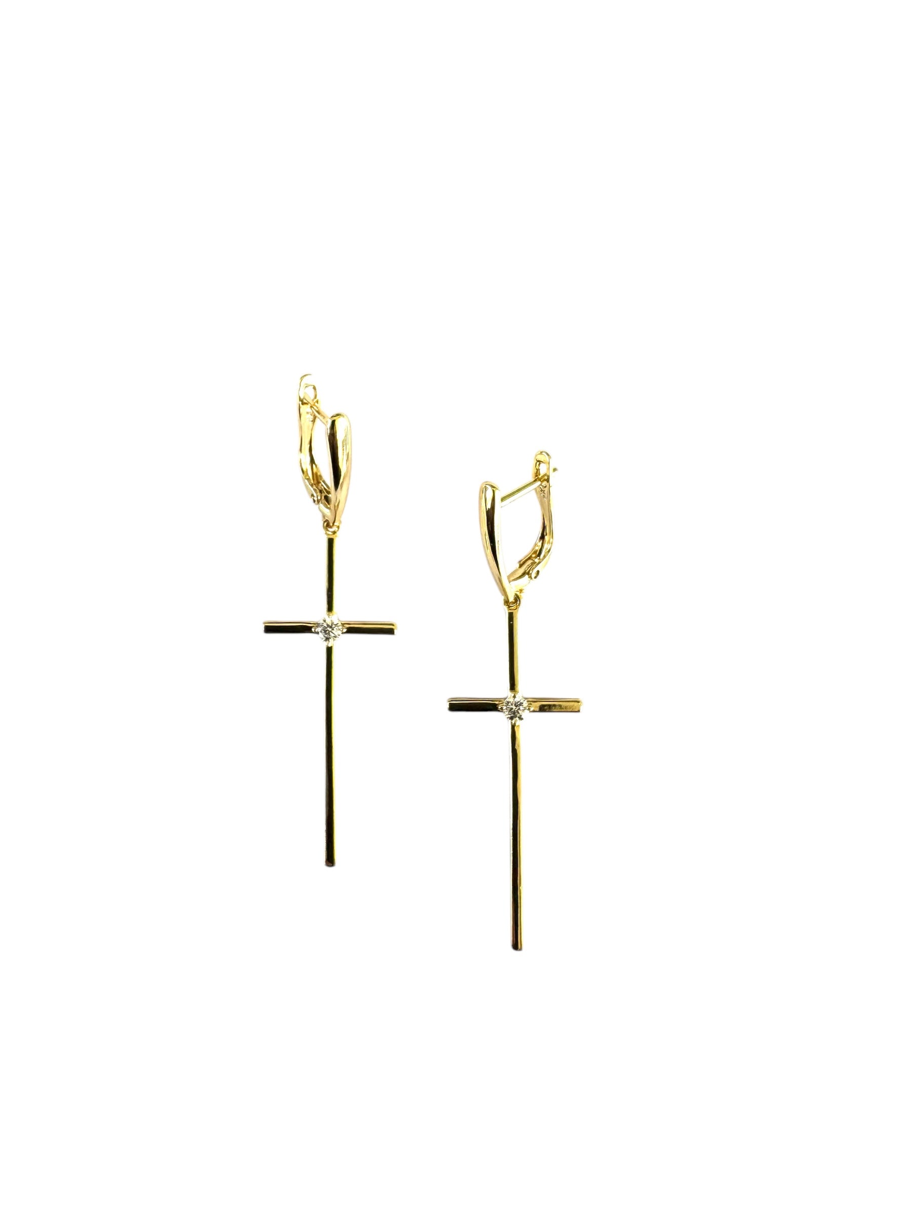 Enhance your style with these stunning long and elegant cross earrings. Perfect for any occasion, these earrings will surely catch everyone's attention. Elevate your look and make a statement with these beautiful accessories. Don't miss out on these must-have cross earrings!
