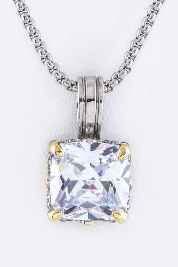 Cushion Cut CZ Pendant Necklace