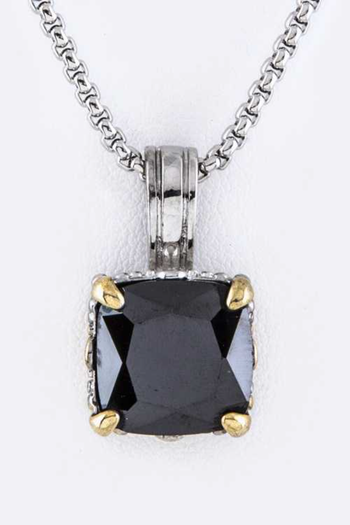 Cushion Cut CZ Pendant Necklace. Necklace - 17" + Extension. Cubic Zirconia Stones. Lead & Nickel Compliant
