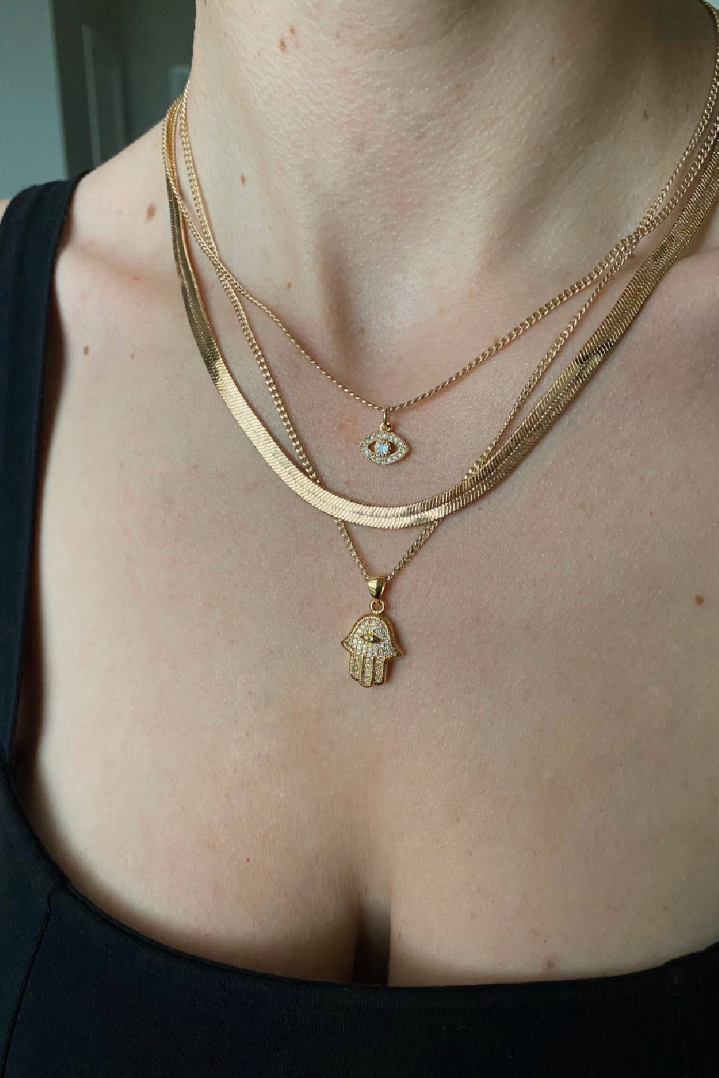 The Eye of Protection necklace serves as a symbol deeply rooted in protective energies.