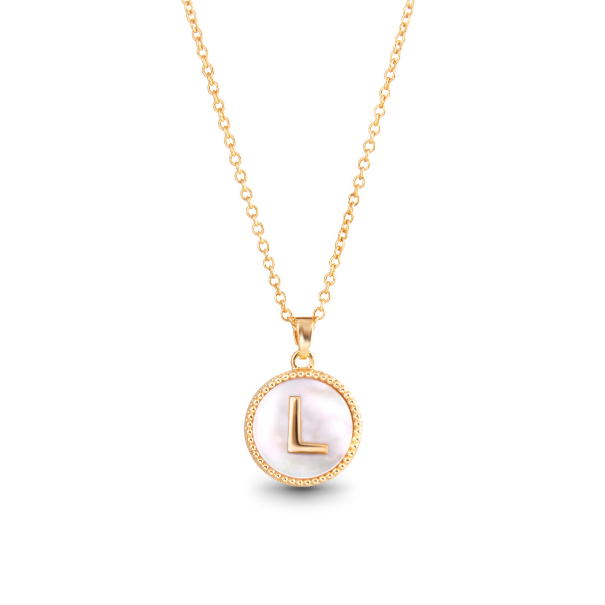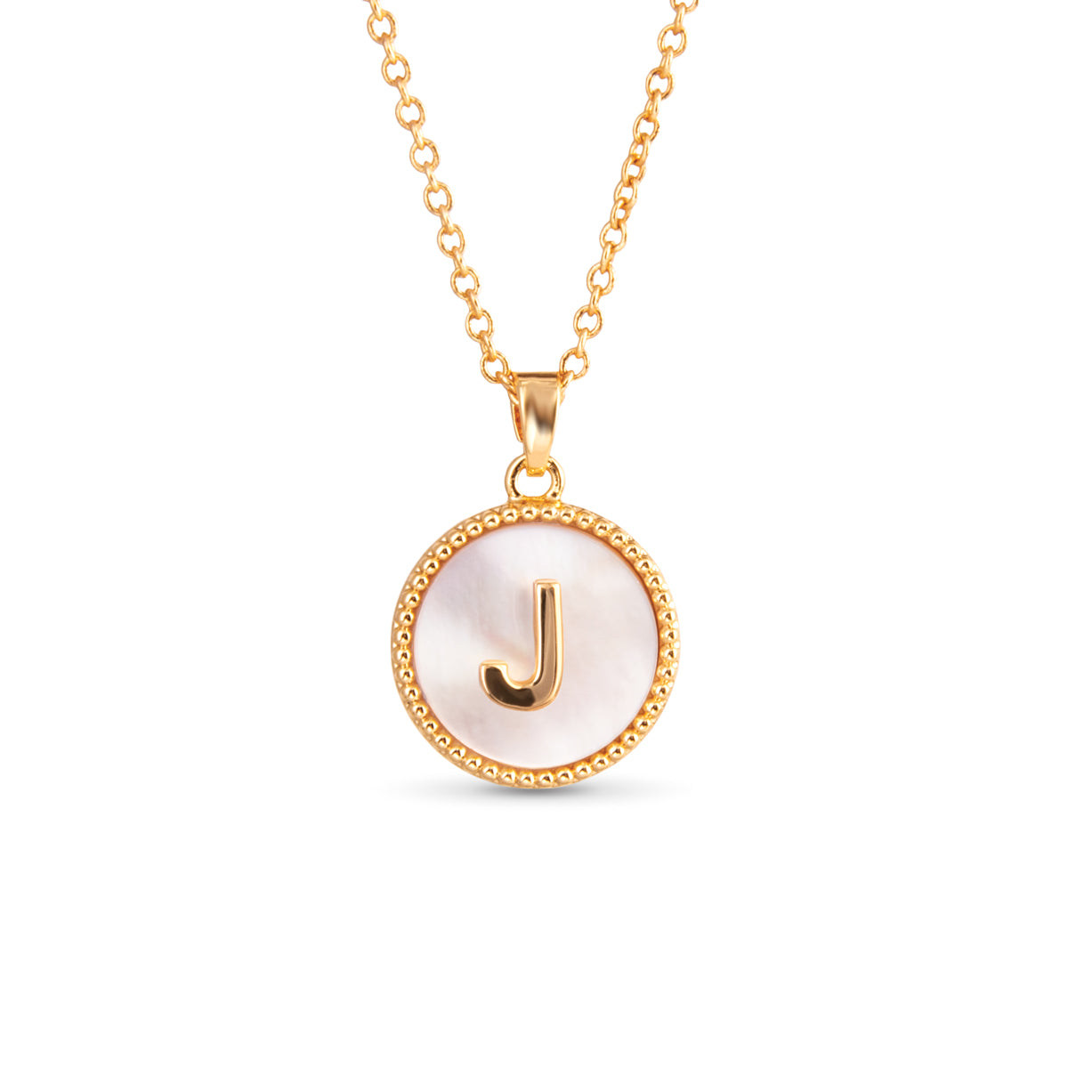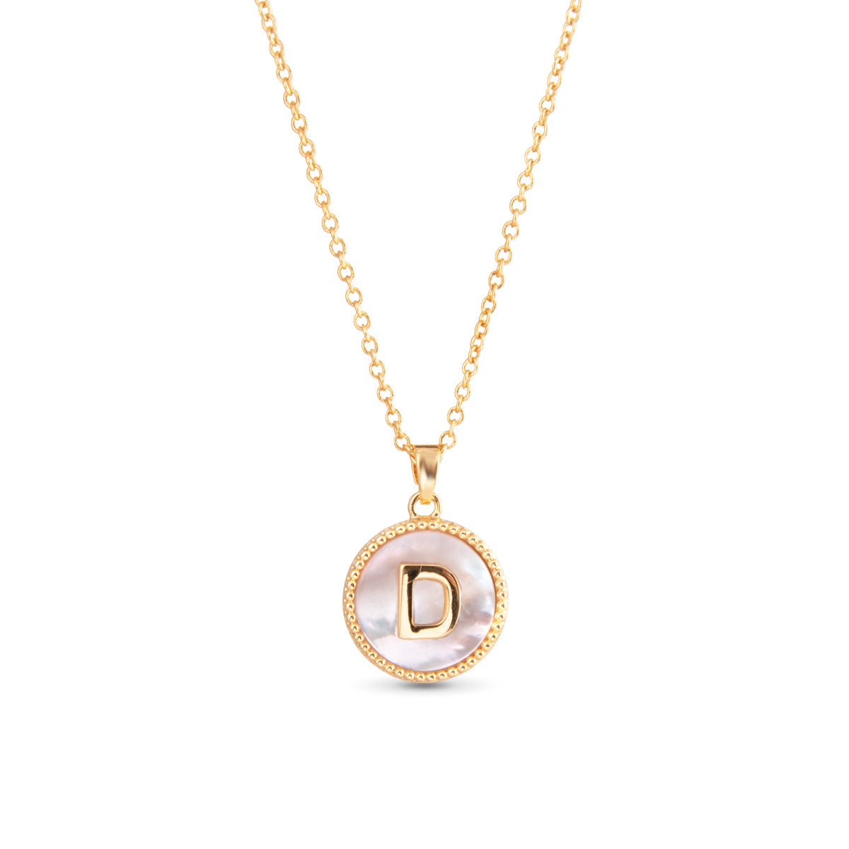 Gold Mother of Pearl Initial Necklace