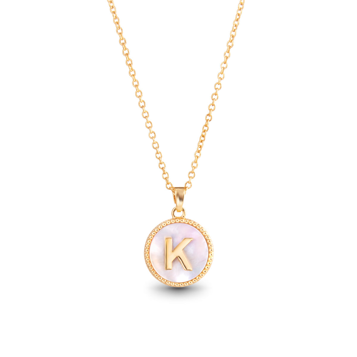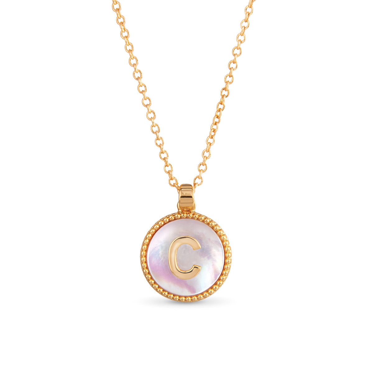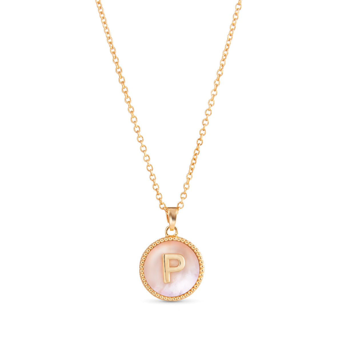 Gold Mother of Pearl Initial Necklace