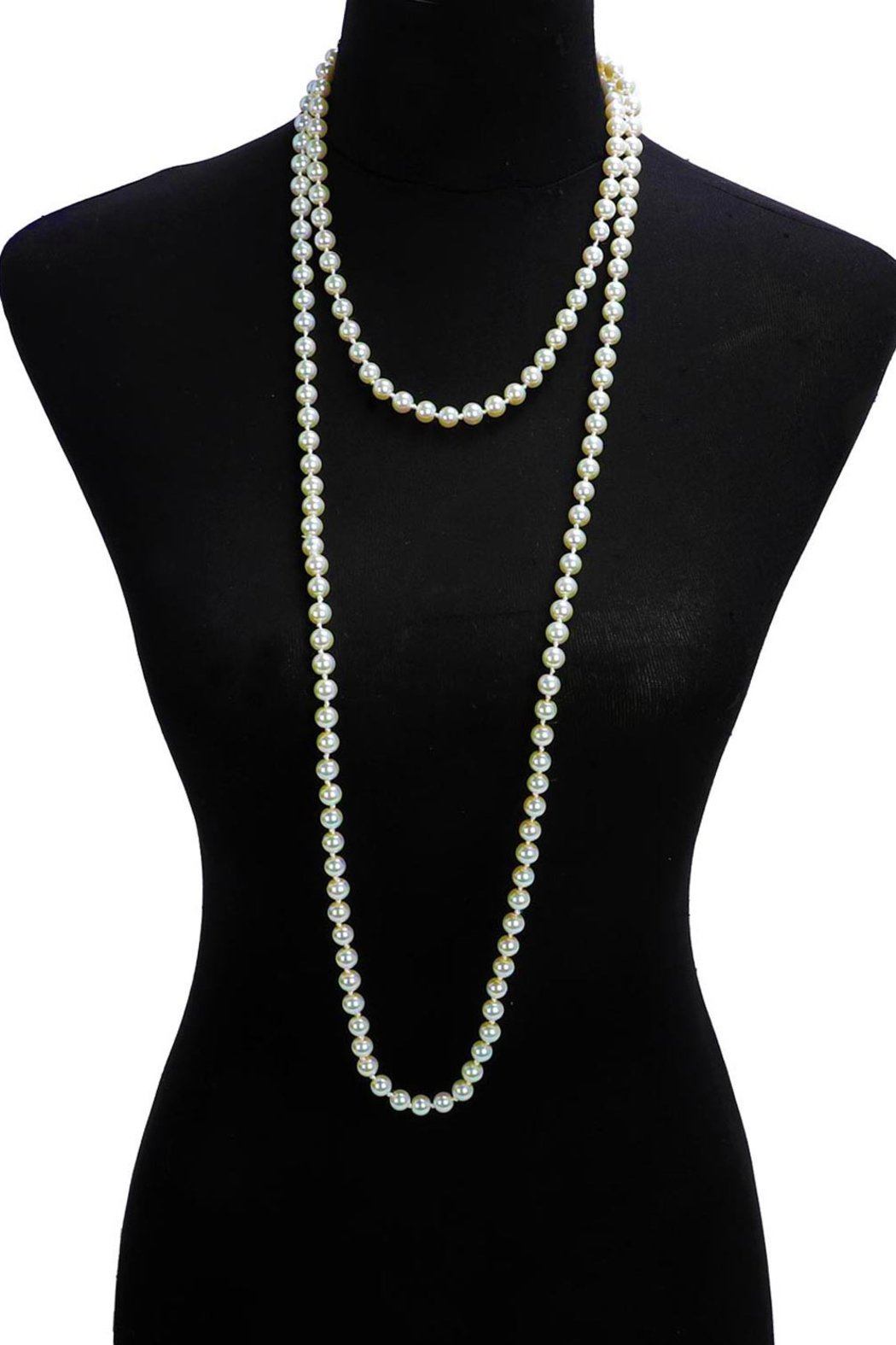 Pearl Single Strand Long Necklace. 7MM 60" CLASSIC SINGLE STRAND PEARL LONG WRAPPING LAYERED LOOK NECKLACE LENGTH: 60" WIDTH:0.25" ENDLESS LONG NECKLACE WRAPPING LAYERING LOOK SINGLE STRAND DRESSY FORMAL EVENING PARTY EVENT GLAM WHITE CULTURED FRESHWATER WEDDING BRIDAL VINTAGE CLASSIC BEADED PEARL ADJUSTABLE NECKLACE