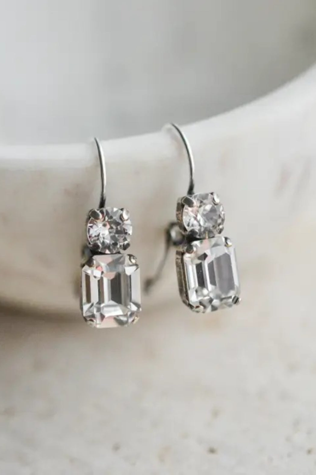 Leverback setting with crystals. Just under 1” long.