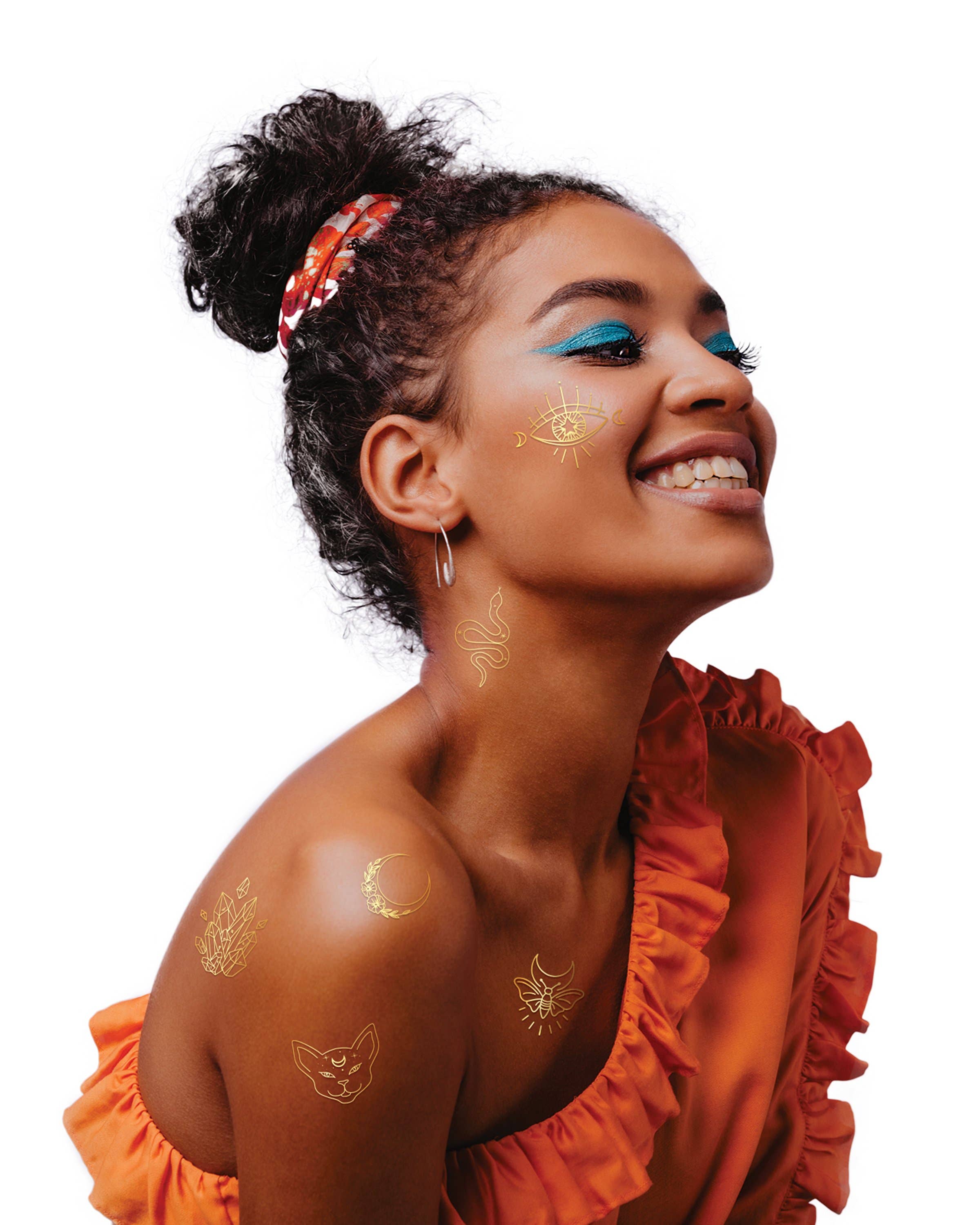 Believe it or not, those talismans protect you from the curse of a dull look. Sparkling Gold Magic temporary tattoos are made for the 'rich witch' mood.