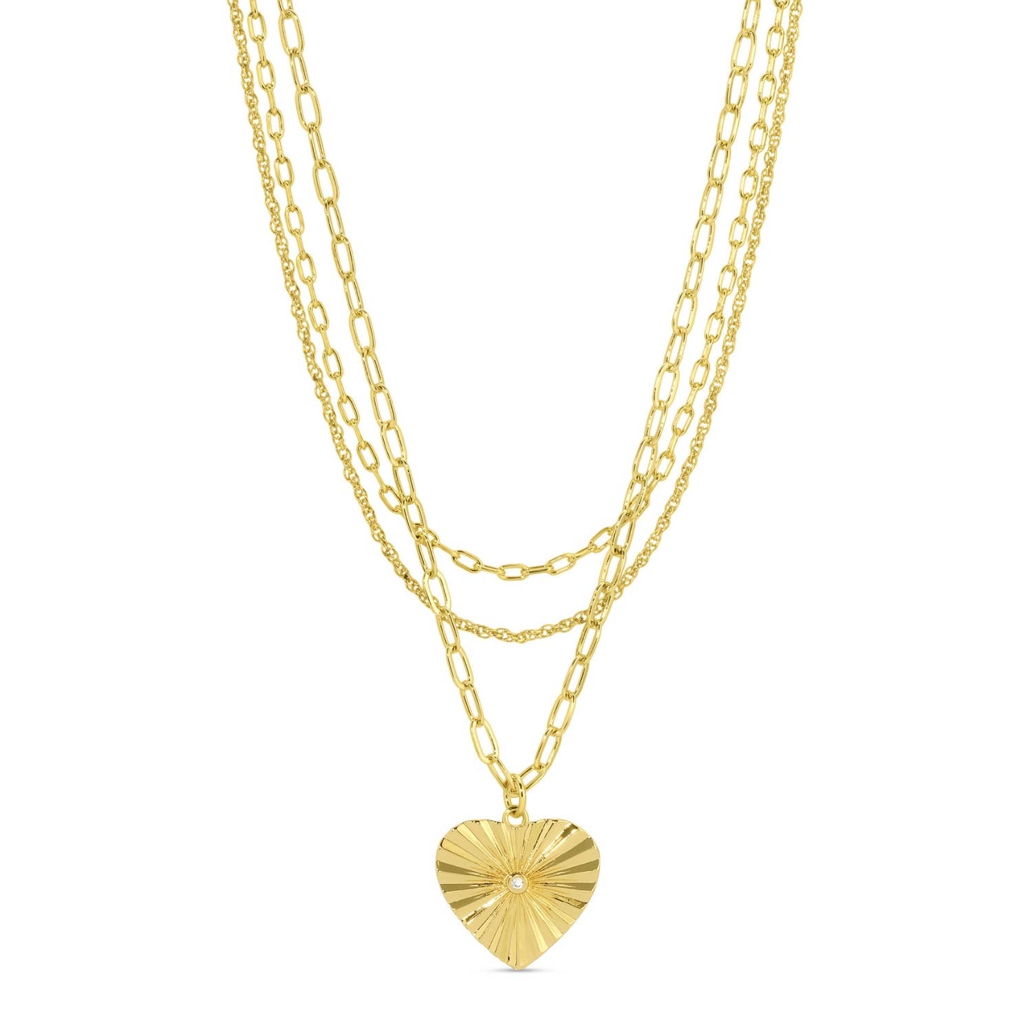 Spruce up your look with our Triple Layer Heart Pendant Necklace featuring two layers of chains and one layer adorned with a sparkling cz-embellished pendant!