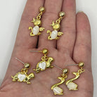Vintage Mother of pearl animal charms on deadstock gold earring post. about .5in in length.