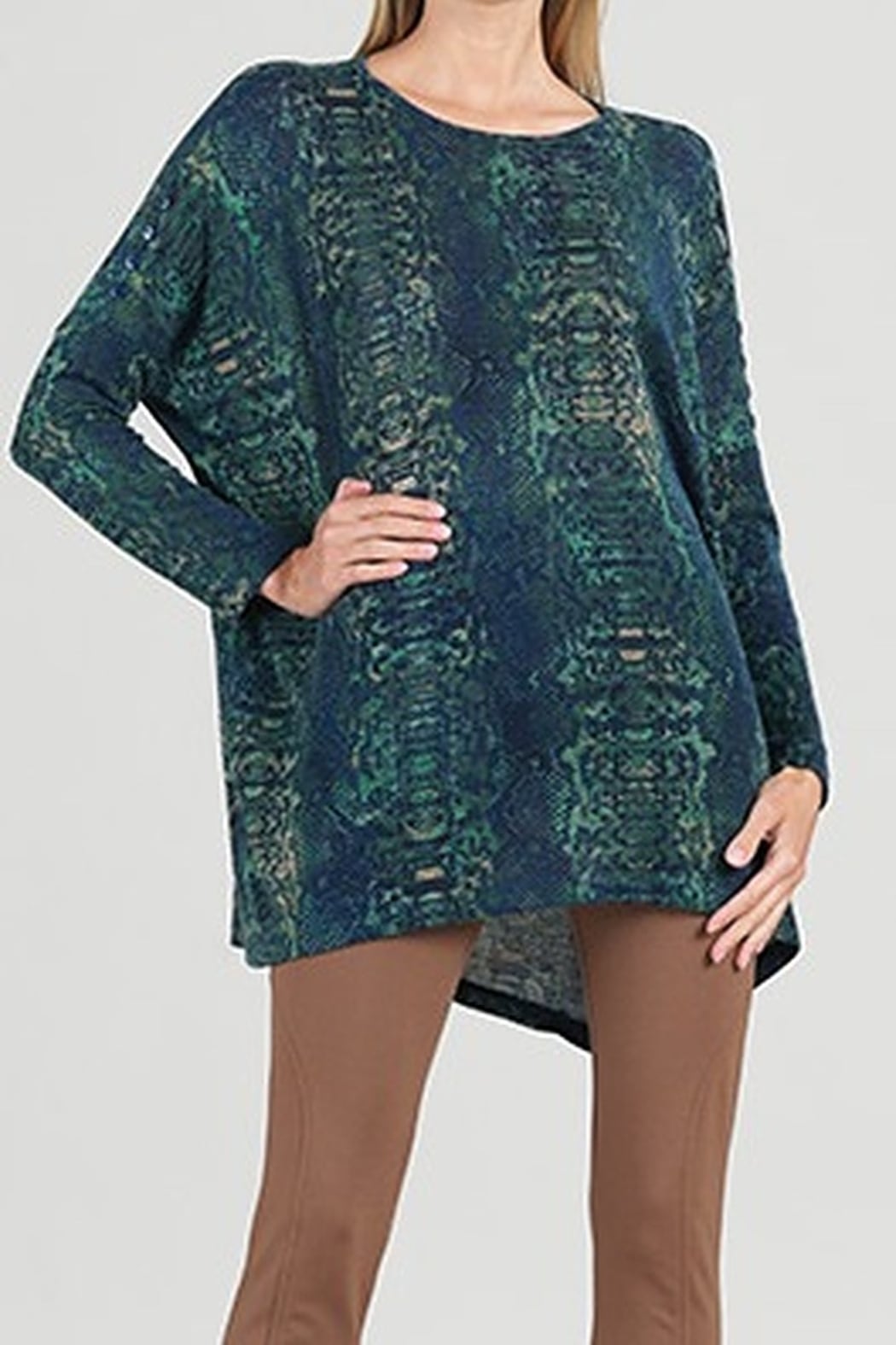 Boyfriend style tunic is great for fall. The slightly oversized look makes it extra cozy. Can be worn with any fitted bottom like leggings, jeans or dress pants. The blue multi color is also a great pop of color for all.