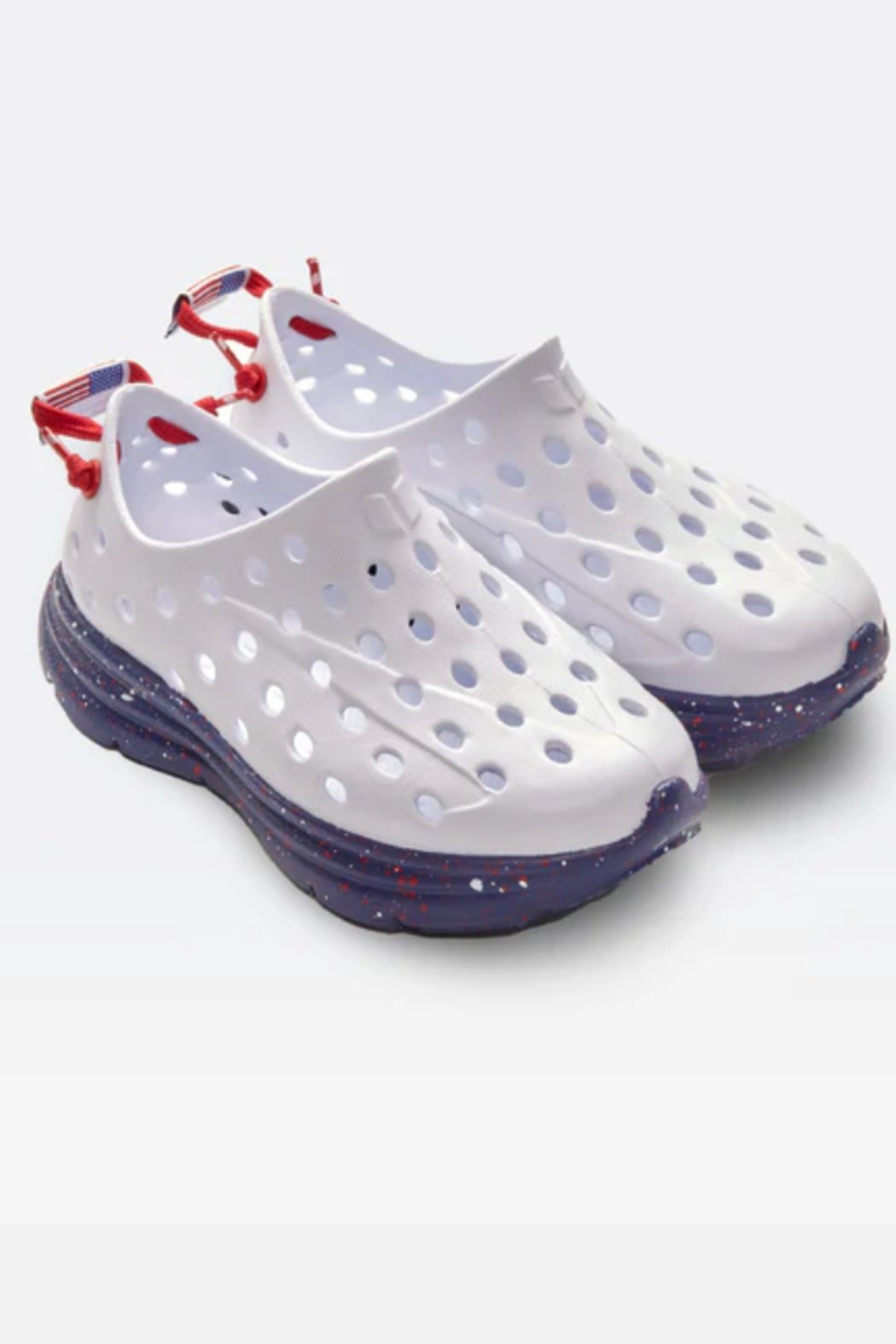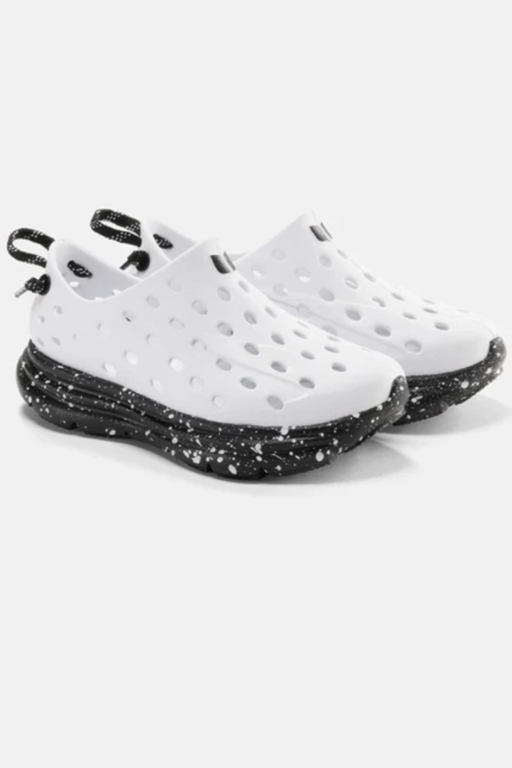 A transformative, sustainably designed injection molded shoe for active recovery. Washable. Quick drying. Ultra durable. KANE Revive shoes are made of bio-based closed-cell RestoreFoam™. The shoes don’t absorb moisture, so they’re just as functional in water as they are on land, and they’re quick-drying. KANE Footwear is easy to clean. KANEs can easily be wiped or washed off with soap and water and are also machine washable at low temperatures (use on cold water setting only). Please avoid exposure to extreme heat or sun for this can cause the shoes to shrink or warp. Dishwashers, dryers, washing machines on a hot water setting or hot cars can also cause the shoes to shrink or warp