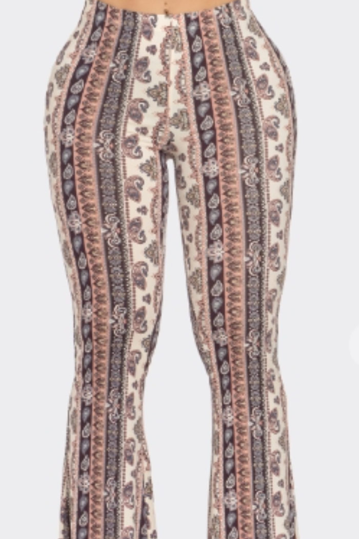 Boho Paisley Printed Flared Long Pant in a Grey/Pink Print