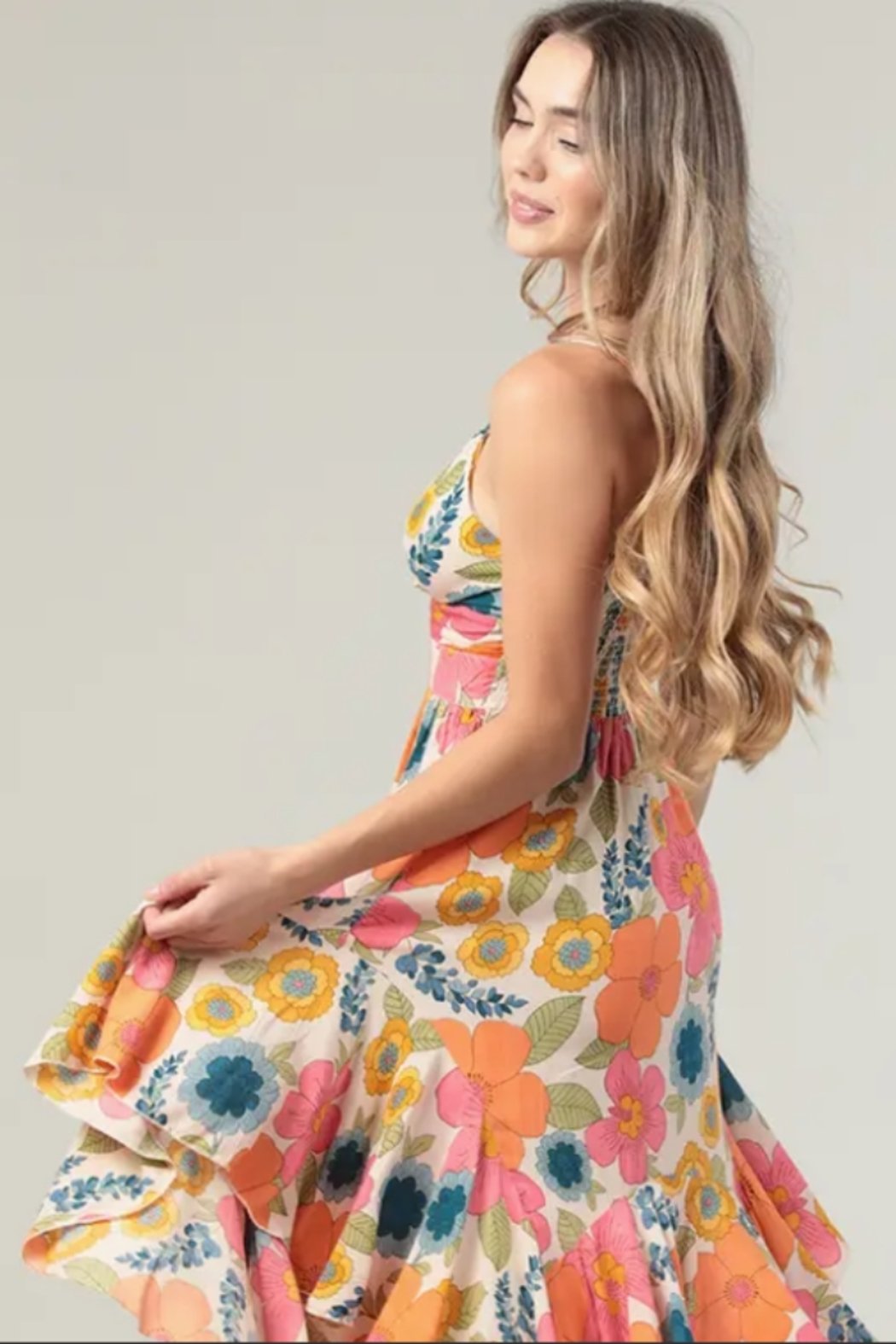 Effortlessly chic with a touch of wanderlust, this bohemian-inspired dress is made in India and designed to flatter from every angle. The twist-front bodice with a subtle triangle cutout adds a playful detail, while the back smocking ensures a comfortable, flexible fit. Its flowing fit-and-flare silhouette is finished with a breezy, asymmetrical hem that moves beautifully with every step. Adjustable spaghetti straps let you customize the fit, making it as versatile as it is stylish. Crafted from 100% soft, lightweight rayon for an airy feel that’s perfect for sunny days or balmy nights.