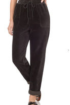 These Corduroy Joggers are a relaxed, everyday pant with a soft ribbed corduroy texture and an elastic drawstring waist. The silhouette is a tapered jogger with cuffed ankles and visible patch pockets for an easy, lived-in look. Wear them for cozy weekends or casual outings when you want comfort with a polished corduroy finish. The fabric and styling give a versatile vibe that pairs well with tees or chunky sweaters.