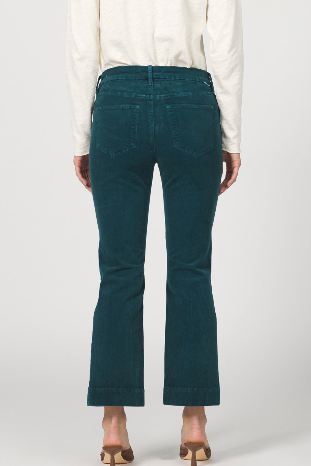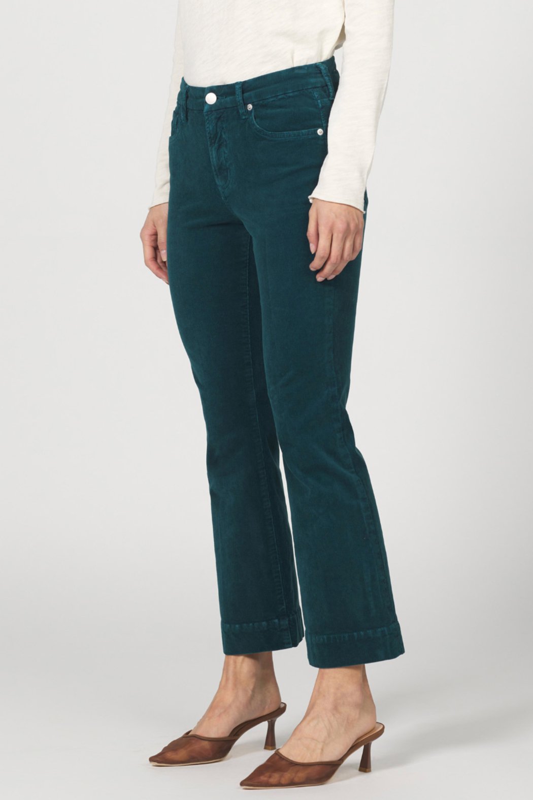 Mid rise cropped flare jeans.