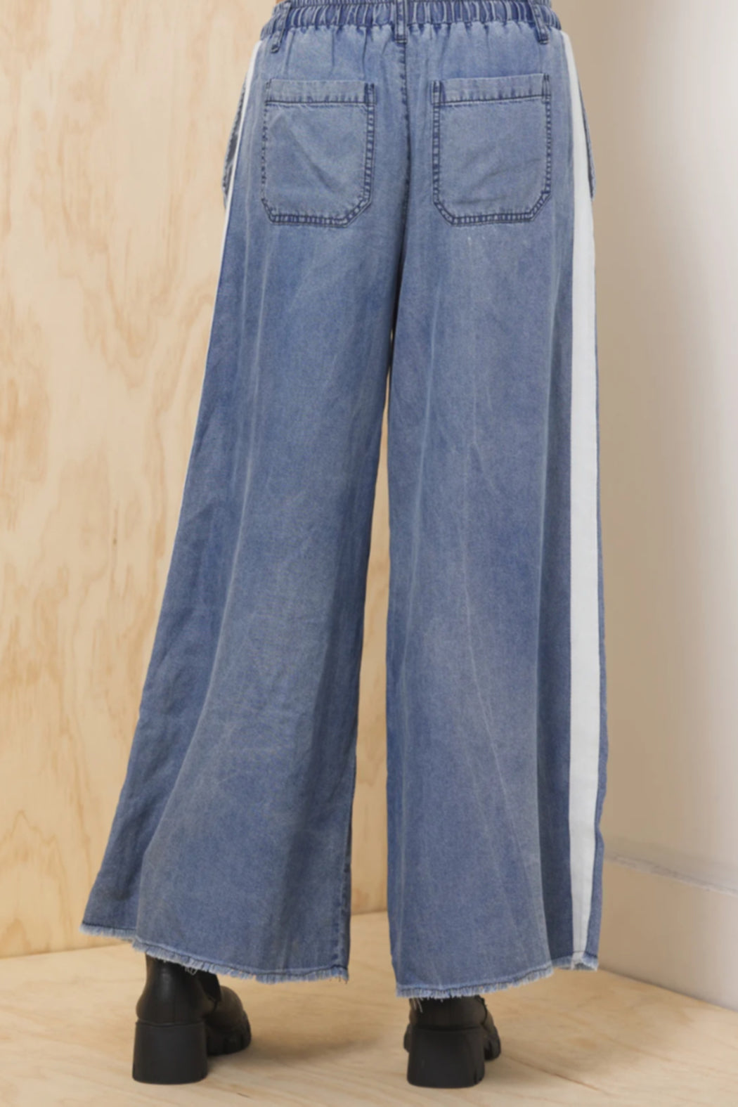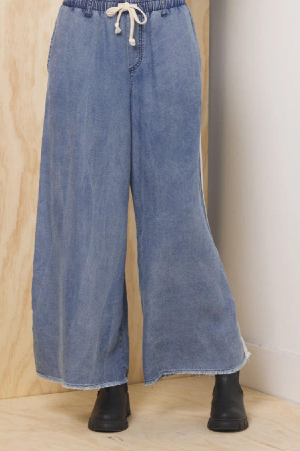 Denim Tencel Taping Wide Leg Pant