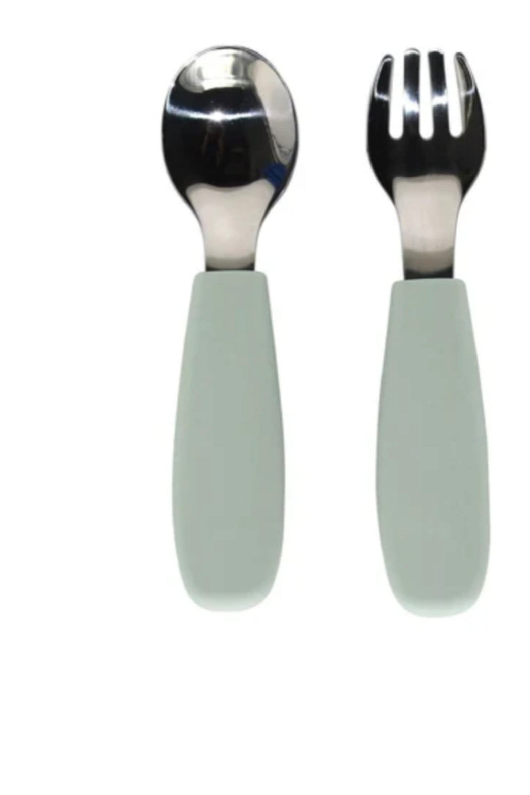 Self-feeding is simple and safe for little ones with noüka’s Toddler Cutlery Set. This set includes a fork and spoon with smooth edge design for safety. The soft silicone handle allows for a comfortable grip as they practice self-feeding. Made from food grade silicone and stainless steel that is dishwasher safe, our dinnerware set is easy to clean, durable, and long-lasting. The Toddler Cutlery Set is available in an array of calming, modern colors for your little one.