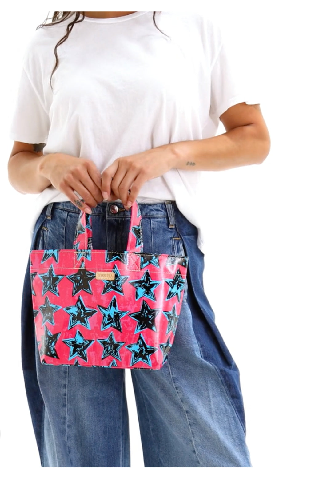 The Mini Bag was made for the little moments- carrying keys and a snack for a walk on the beach, lunch and a cold brew to the office, or for waiting patiently in the car, folded neatly under your seat. This bag made of easy-to-clean ConsuelaCloth™ is the smallest of our colorful utility totes.