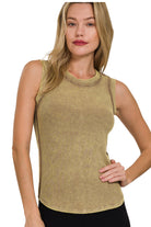 The Ribbed Sleeveless Tank Top is a fitted, rib-knit tank with a crew neckline and subtle raw-edge detailing. Lightweight and slightly stretchy, it skims the body for a sleek, modern silhouette that layers effortlessly. Wear this tank alone in warm weather or under jackets for a clean, casual look.