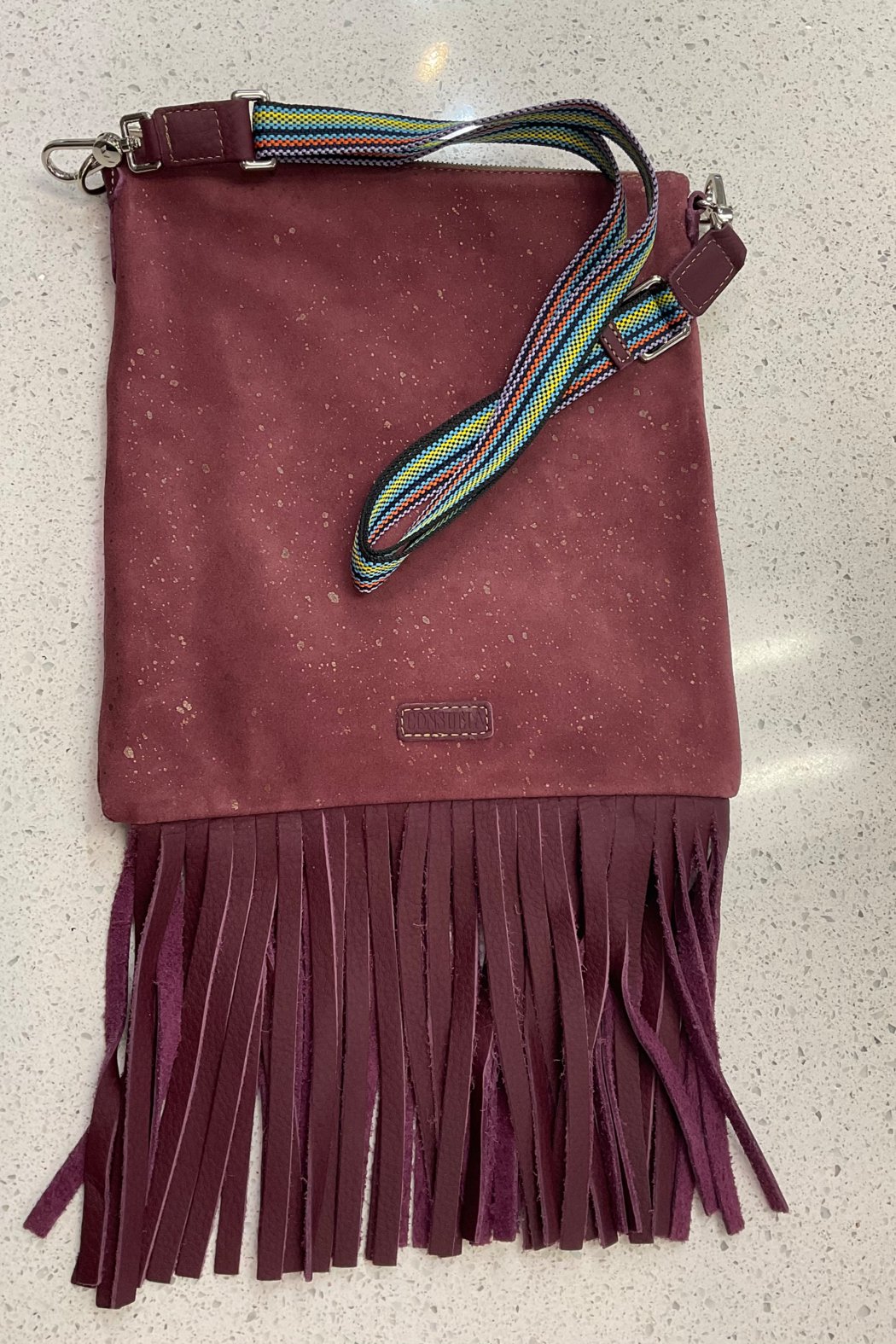 Includes detachable and adjustable woven crossbody strap