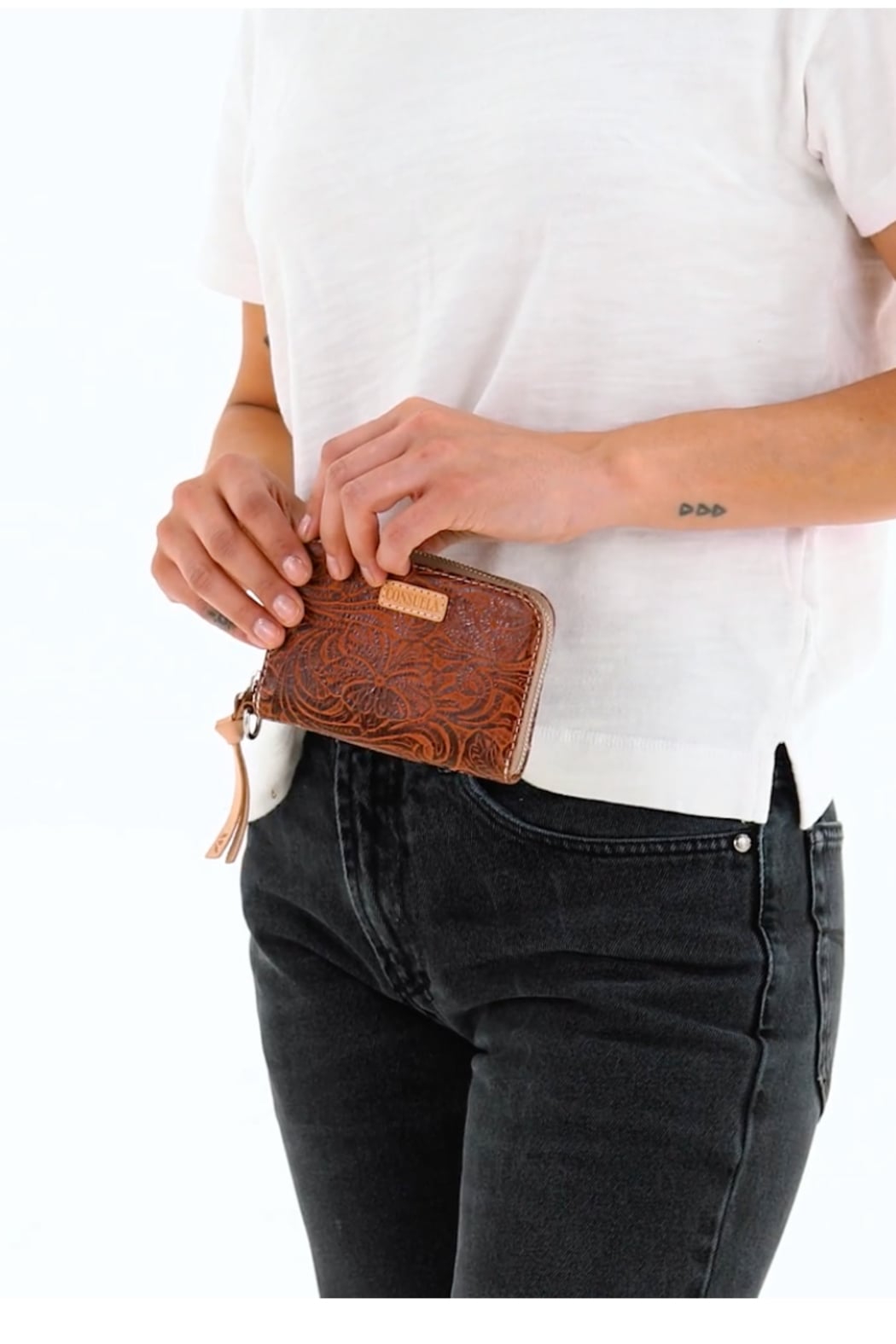 Say hello to Zippy, our newest wallet. This small, but mighty companion has both interior and exterior card slots with a zip closure. Use the D-ring to securely attach Zippy to your bag lanyard or combi wristlet.