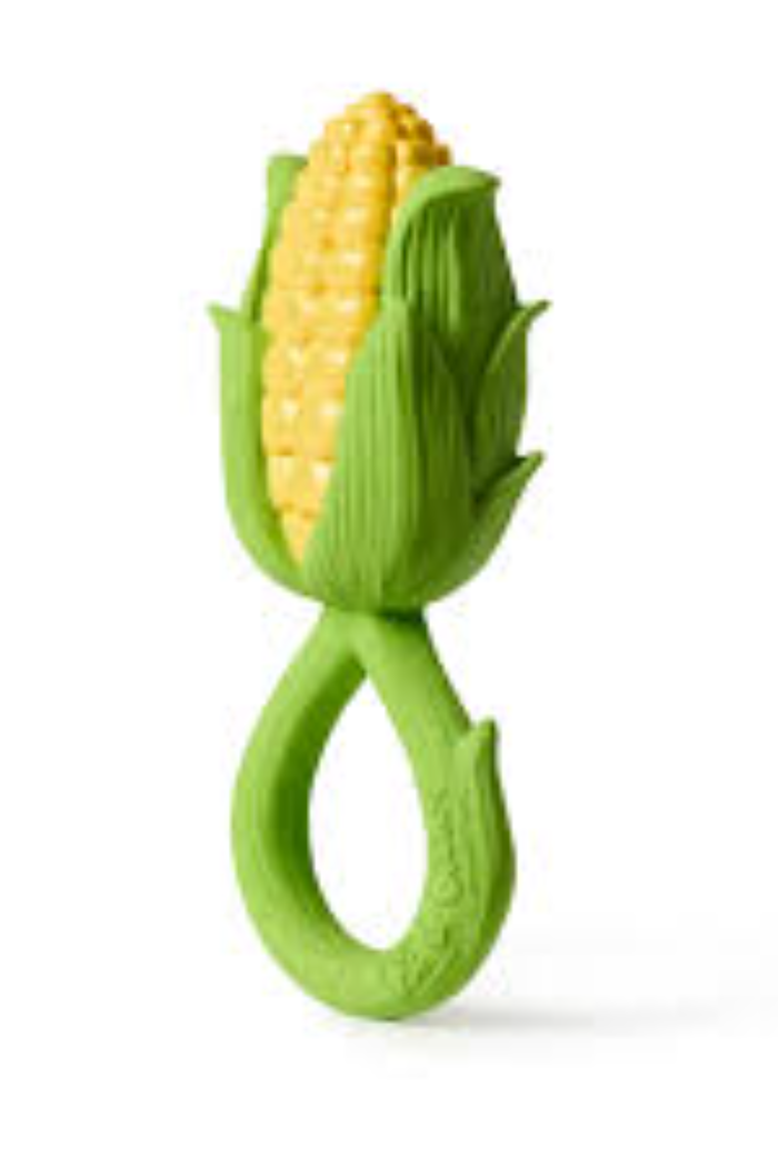This corn rattle toy is the greenest rattle in the market. It's exterior is made of 100% natural rubber, and inside are upcycled cherry seeds that turn this teether into a rattle. 2 in 1! This rattle toy has been designed to create the perfect sound pitch that will help babies cam down, rather than overstimulate. Filled with incredible textures and details that will help stimulate baby little one's senses while teething on them.