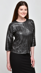 Introducing Zip Top - the versatile, comfortable, and dressy addition to your wardrobe! With an invisible front zipper, choose your neckline and style options with ease. The elbow-length sleeves add a chic touch. Wear it as a two-piece set or as a standalone top. Upgrade your look now!