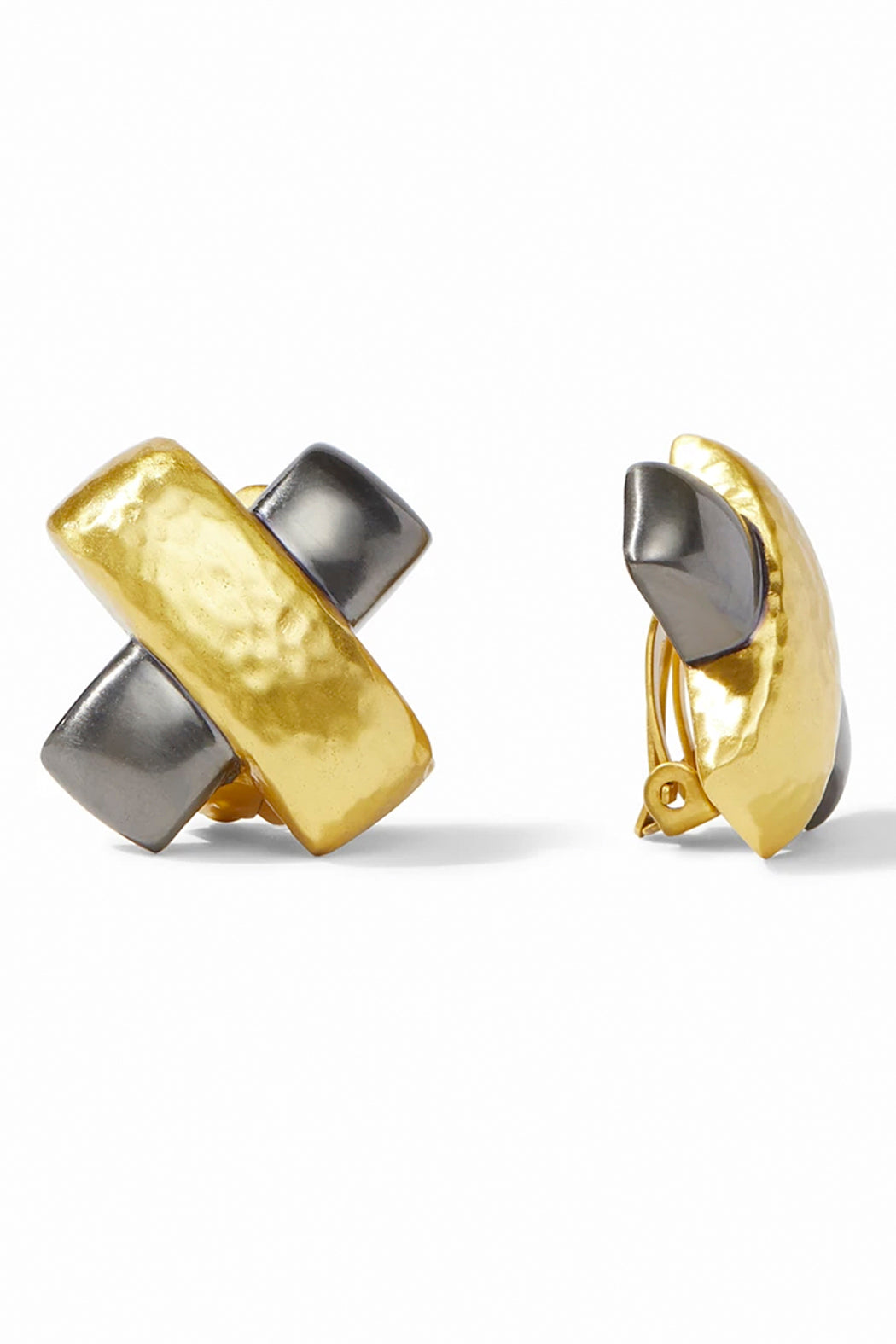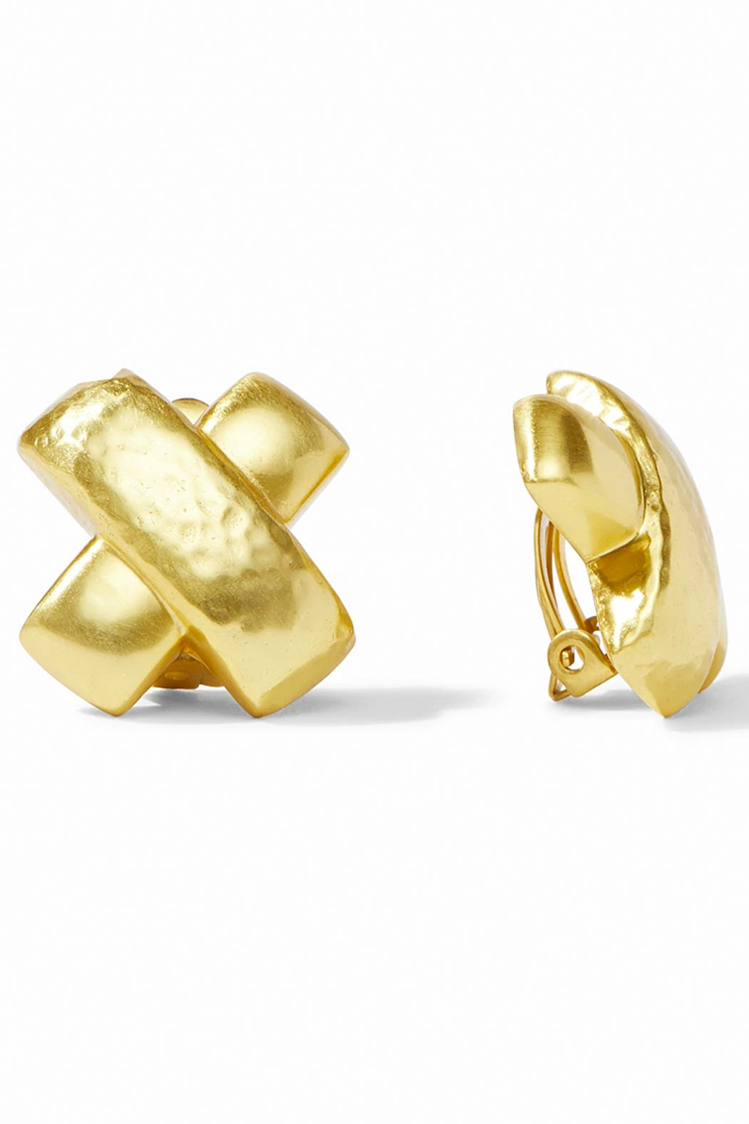 Elegant X defined by a lightly hammered finish overlapping a smooth finish.