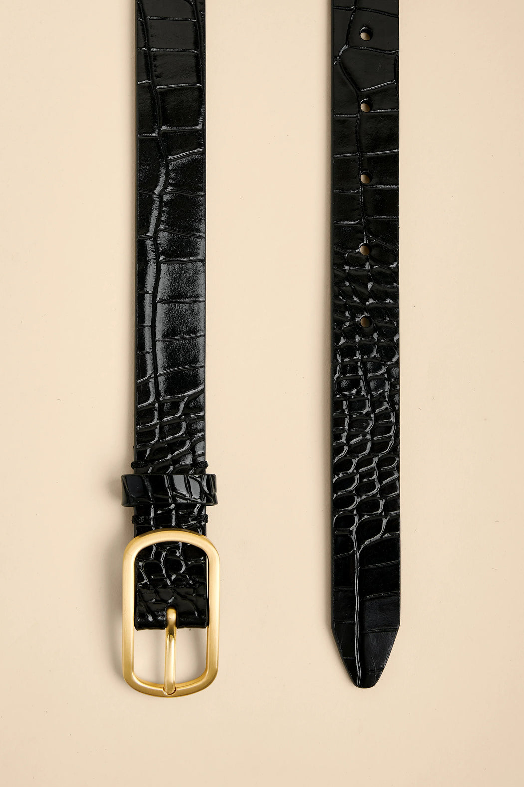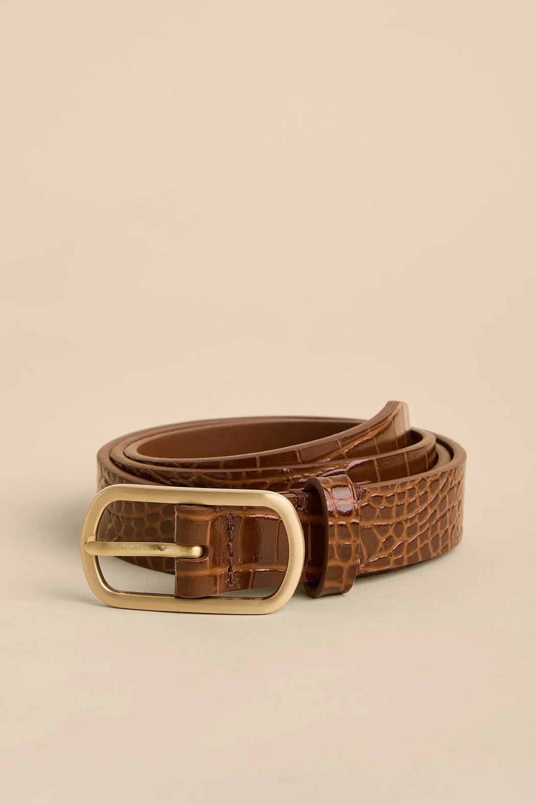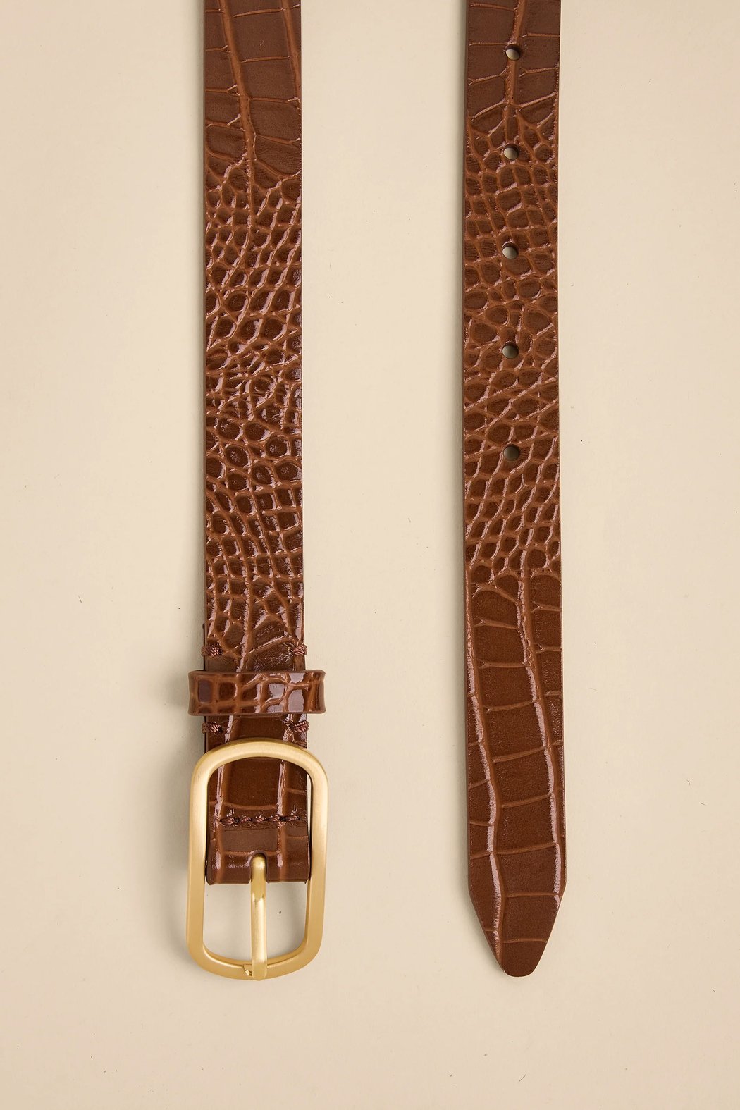 The accessory that makes you want to wear your shirt tucked every day: the luxe, embossed croc, leather, Thin Siren Belt. Made to pair with your favorite Spartina denim and dresses. You'll reach for this must-have belt season after season.