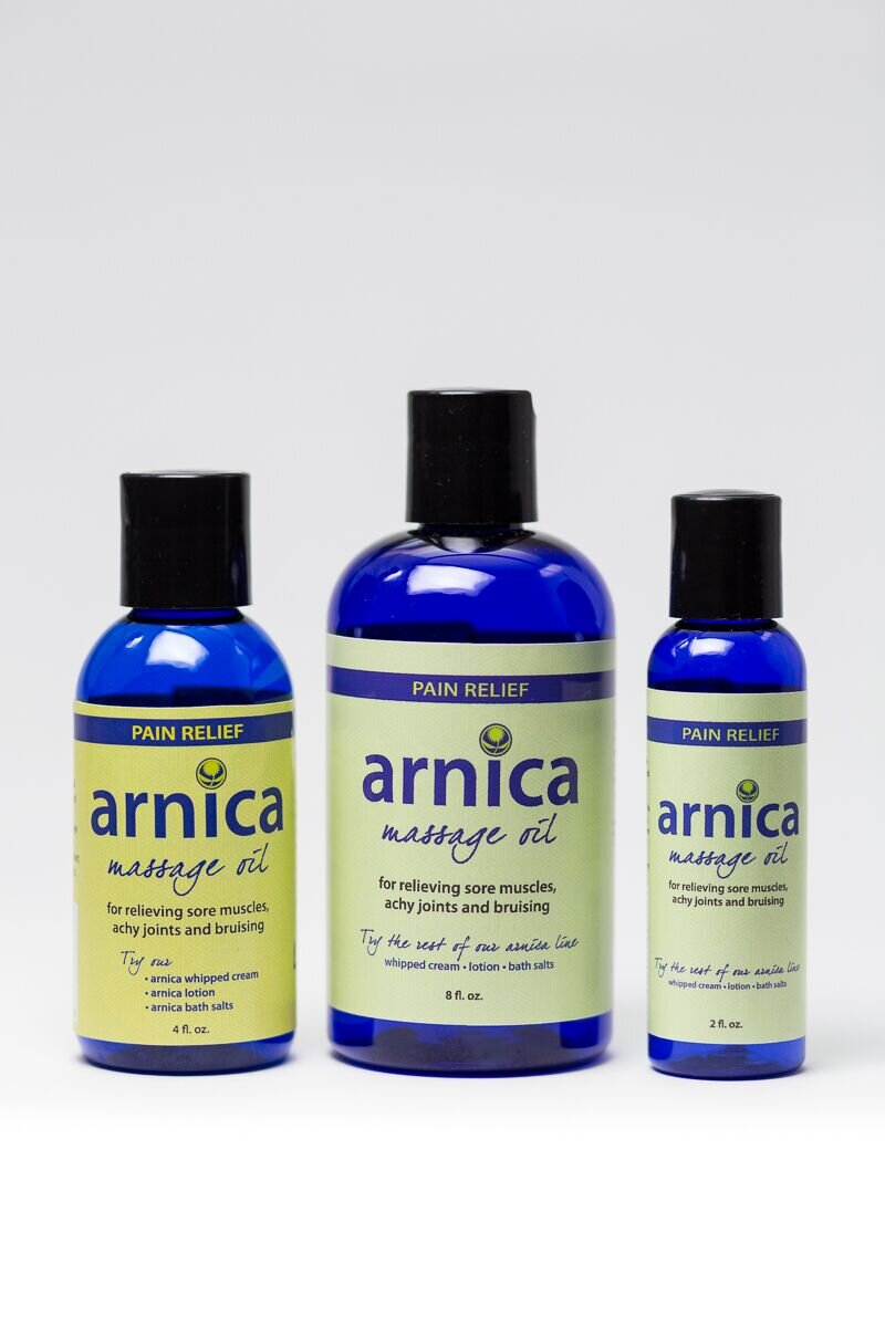 All our arnica products are equally effective in helping ease the discomfort that comes with sore muscles, achy joints, bruising, arthritis and many other issues. Arnica is anti-inflammatory, circulatory, and analgesic (pain relieving). Our oil is great for massages but also as a moisturizer right out of the shower.