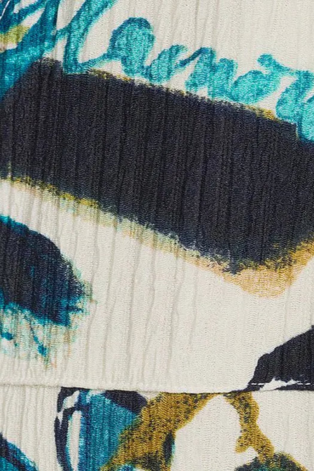 Poly/spandex blend for stretch and comfort. Textured stripe knit with placed print design.