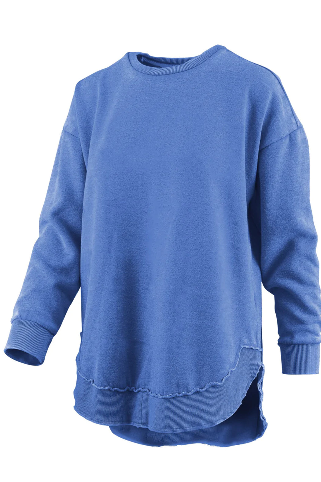 Imagine the coziness of your favorite vintage crew neck with a fun updated twist! The curved hem and vintage wash add a contemporary flare to this closet essential. Promise that you'll want one in every color!