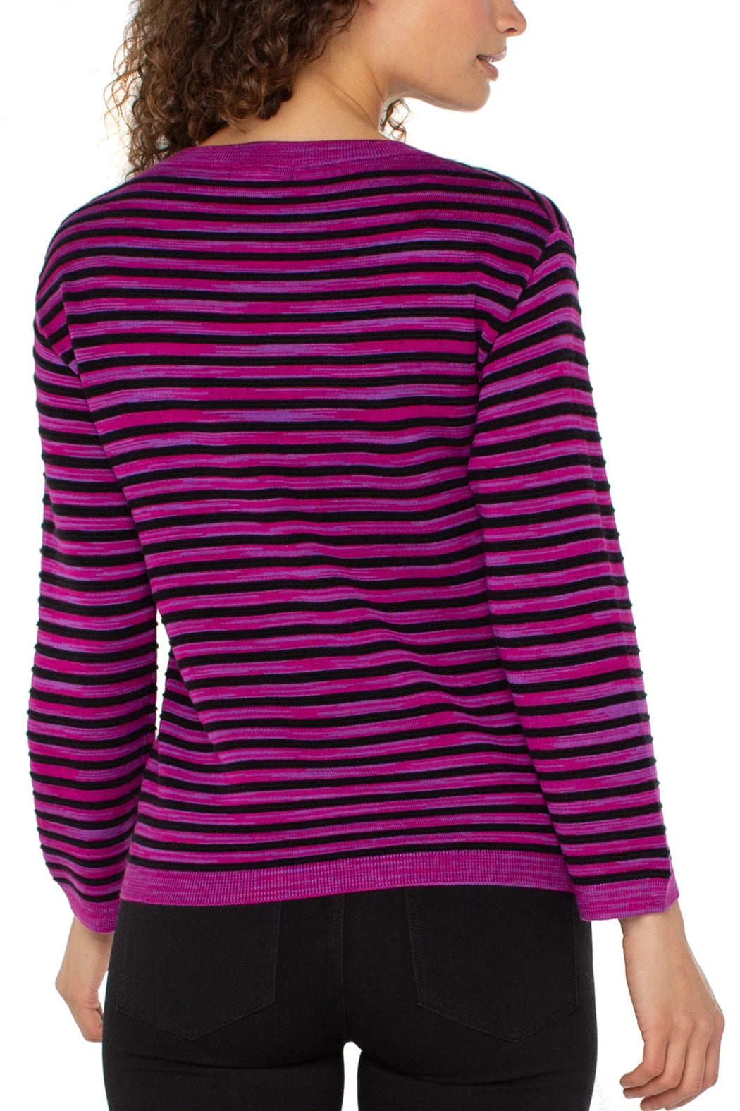 A cropped, boxy silhouette and flattering boat neckline give this cozy knit a modern edge. Crafted from a soft 12-gauge spacedye stripe, it brings rich texture and color to any outfit. Pair it with denim or tailored trousers for an effortless touch of personality.